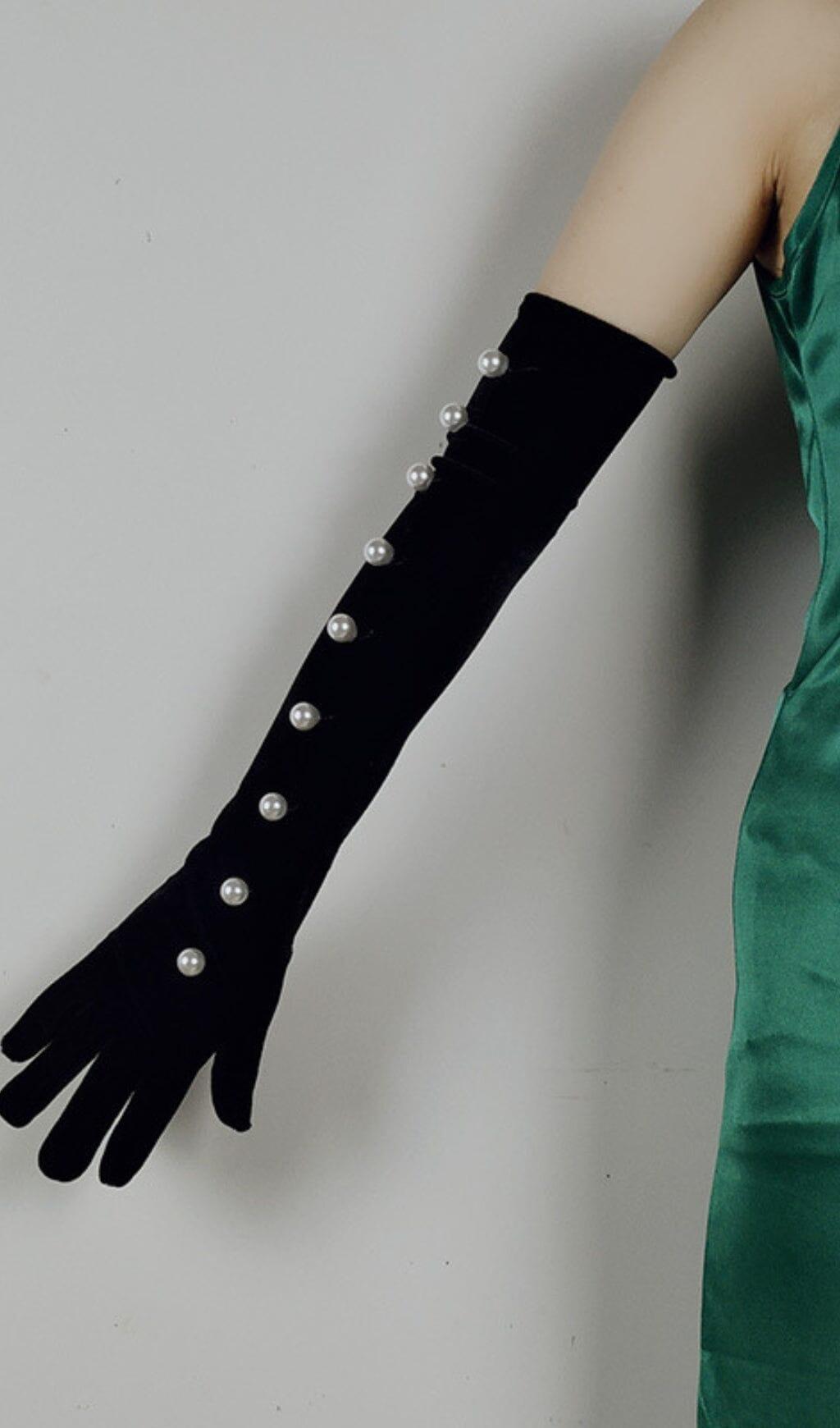 BLACK PEARL EMBELLISHED GLOVES