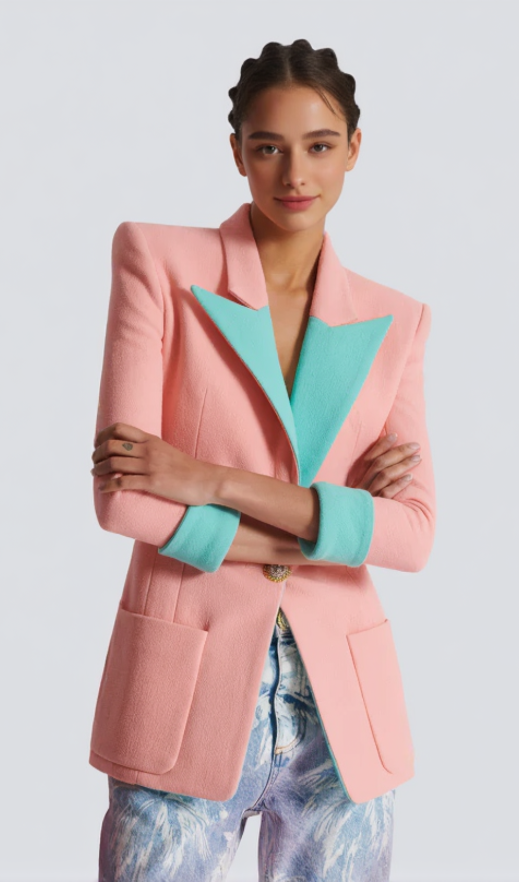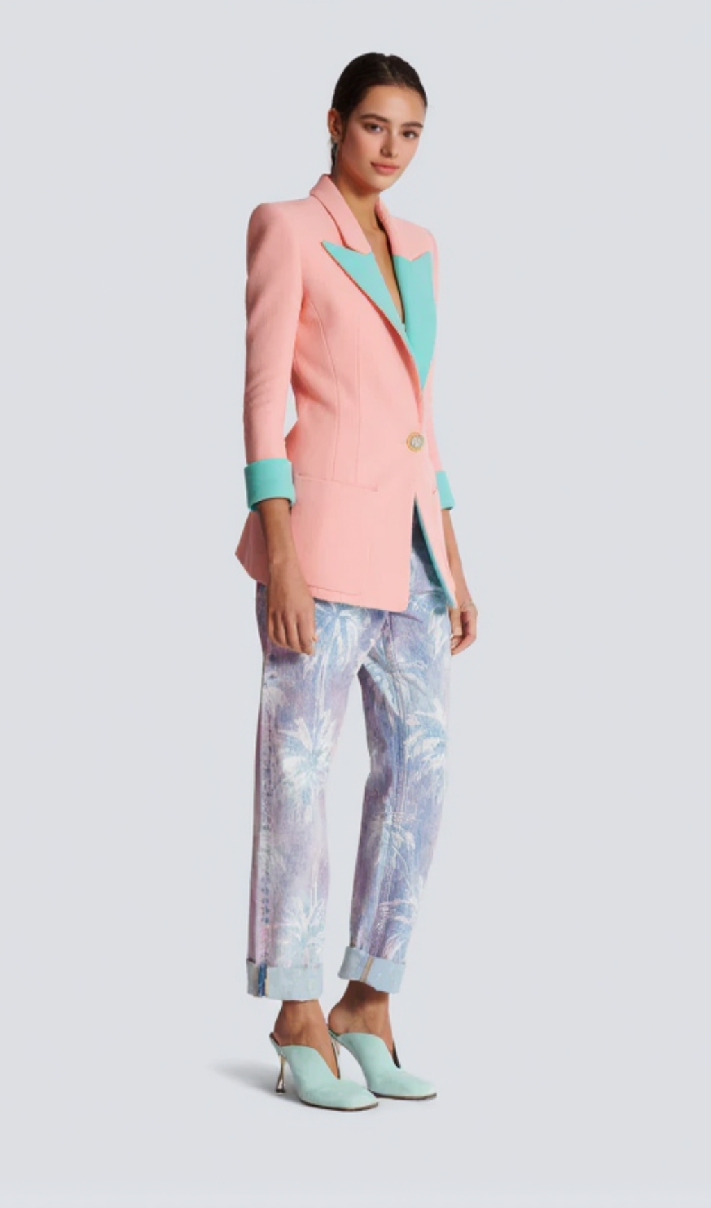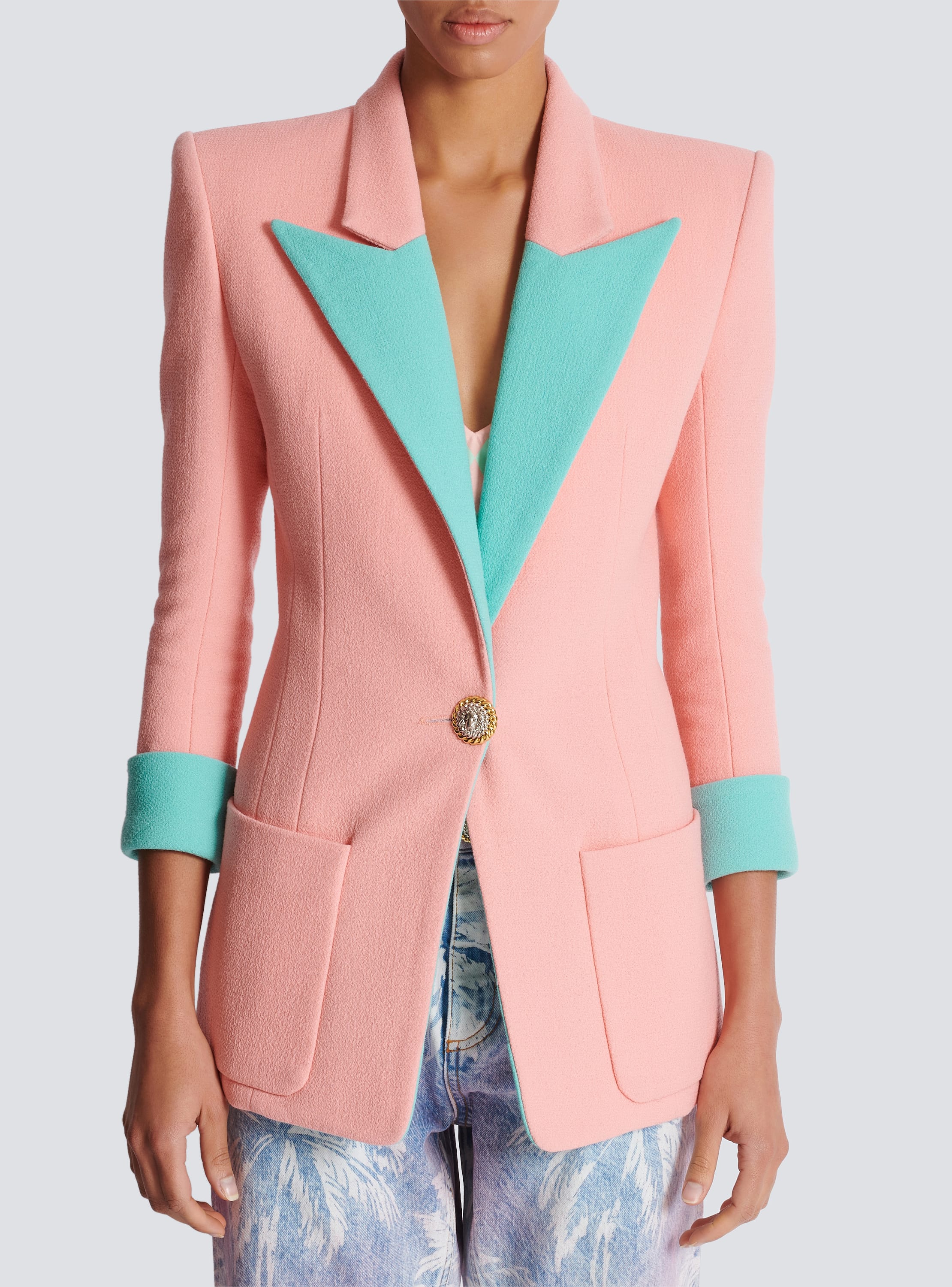 1-button double crepe two-tone jacket