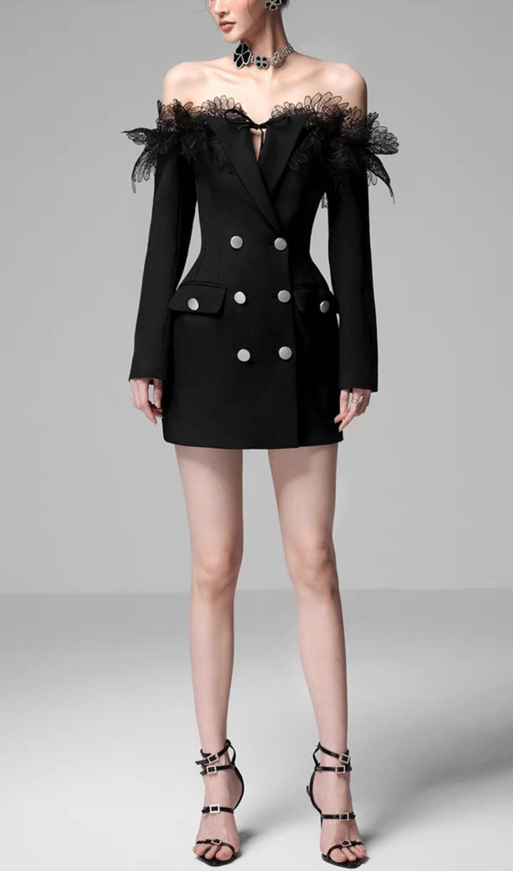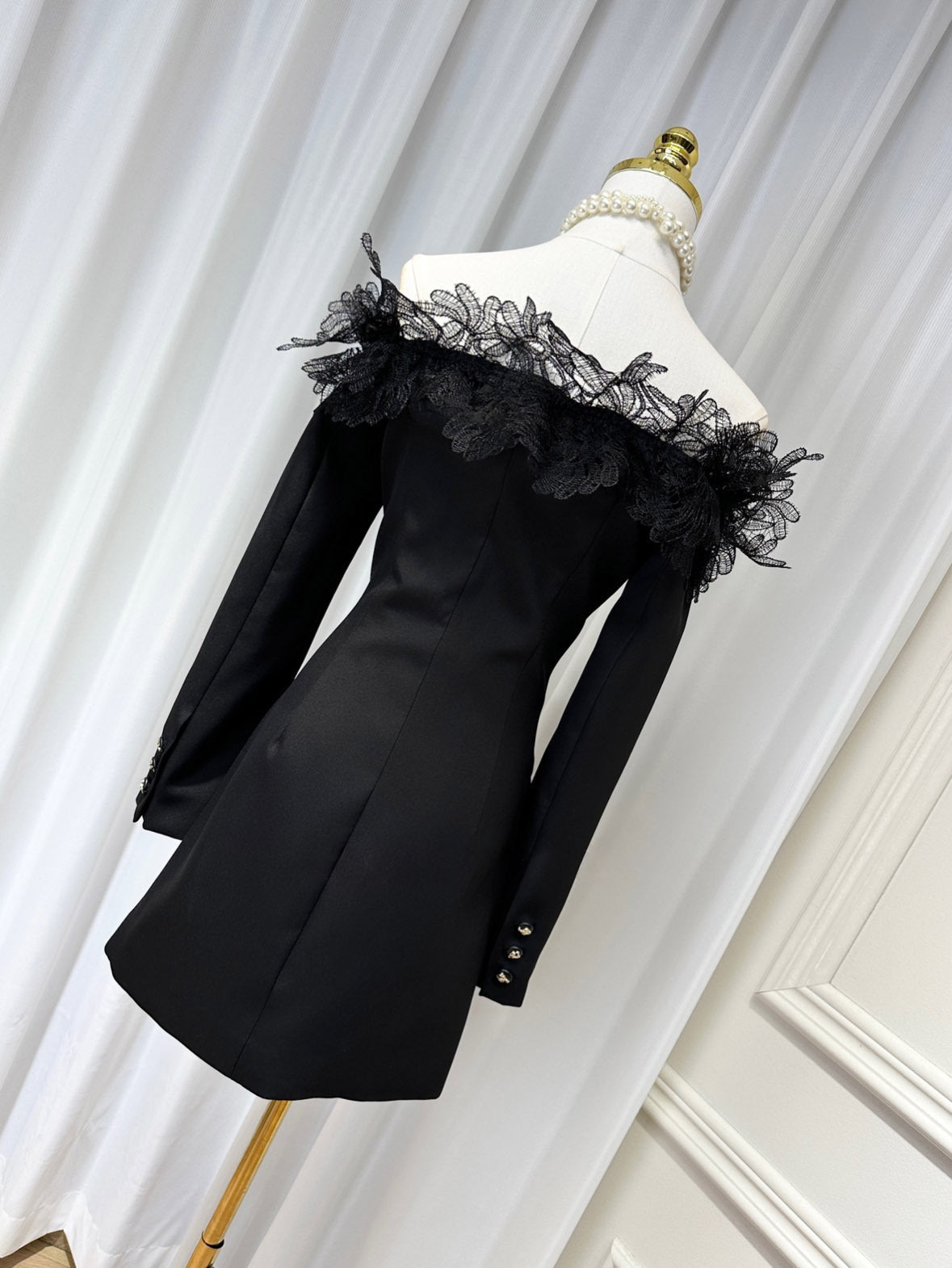 Get ready to turn heads in this 3D embroidered off-shoulder mini dress! With its chic double-breasted design and long sleeves, you'll be the talk of the town. In classic black, this dress is perfect for any occasion. Stand out from the crowd and add some flair to your wardrobe!