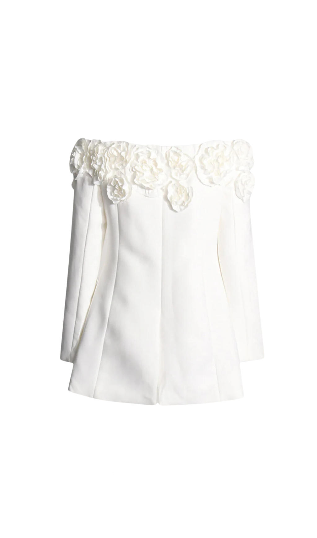 • 3D floral , off-shoulder, mini dress, solid color, white