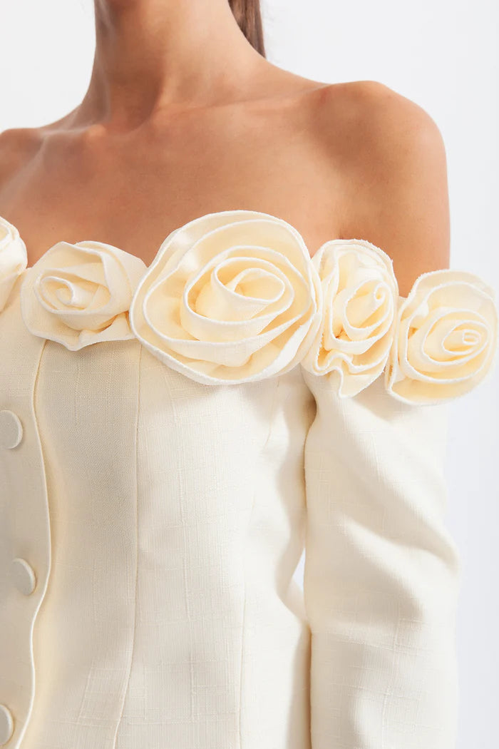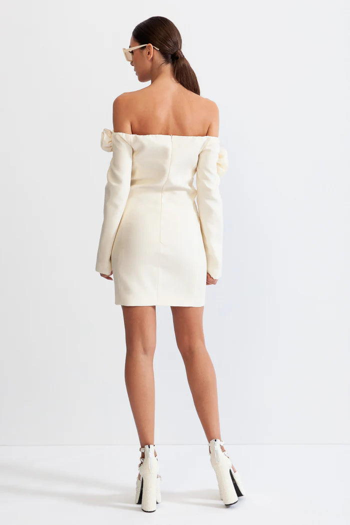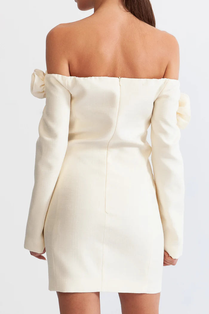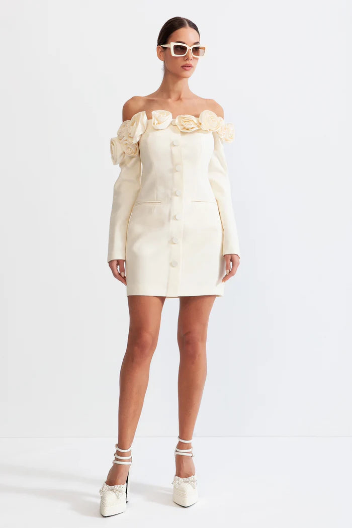 ERICA 3D FLORAL OFF-SHOULDER MINI DRESS IN WHITE