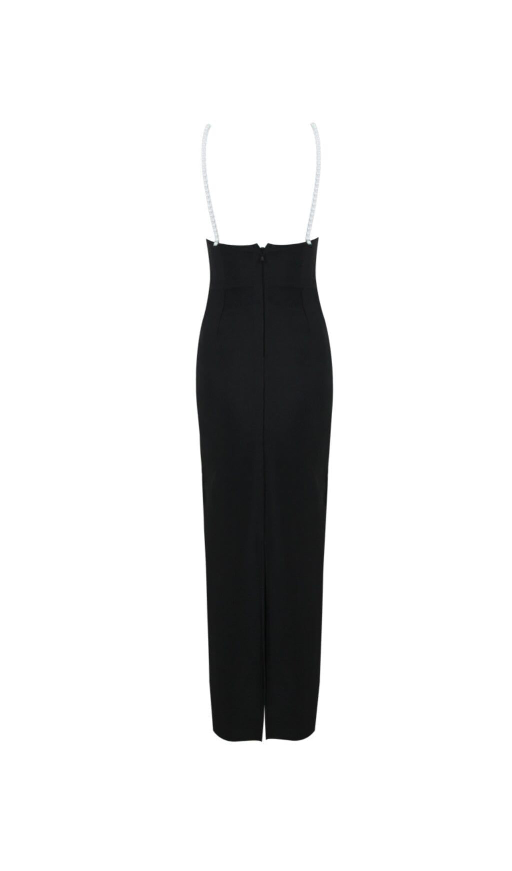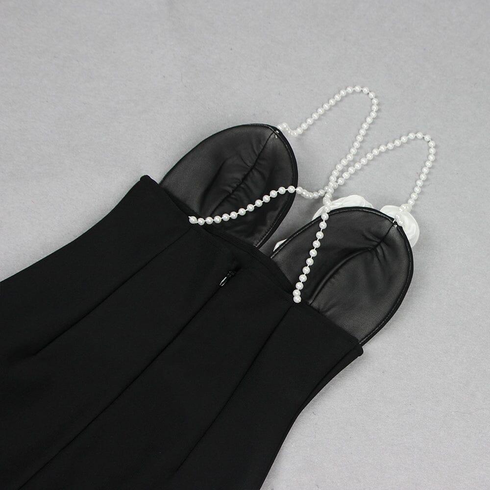 3D FLORAL PEARL SUSPENDER MIDI DRESS IN BLACK