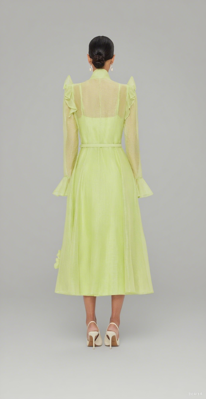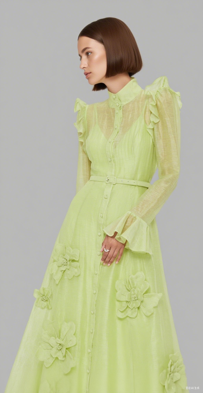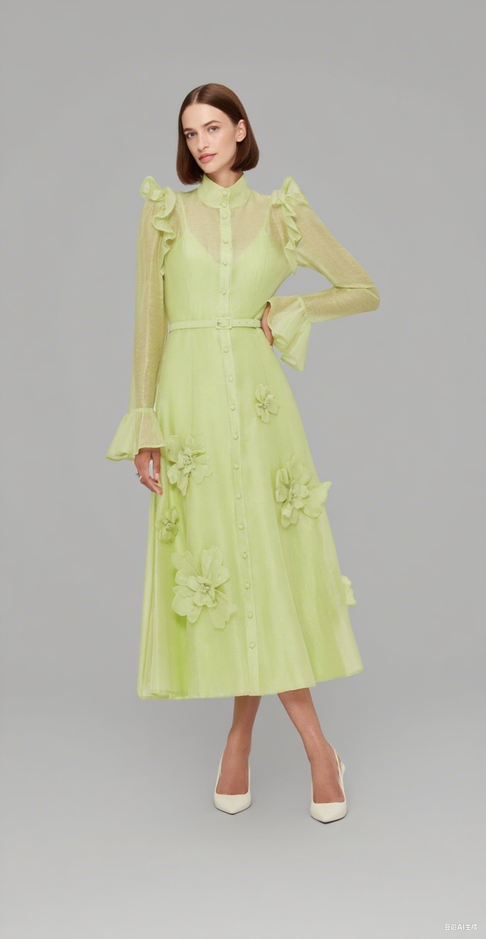 3d flower Butterfly Sleeve Midi Dress - Chartreuse