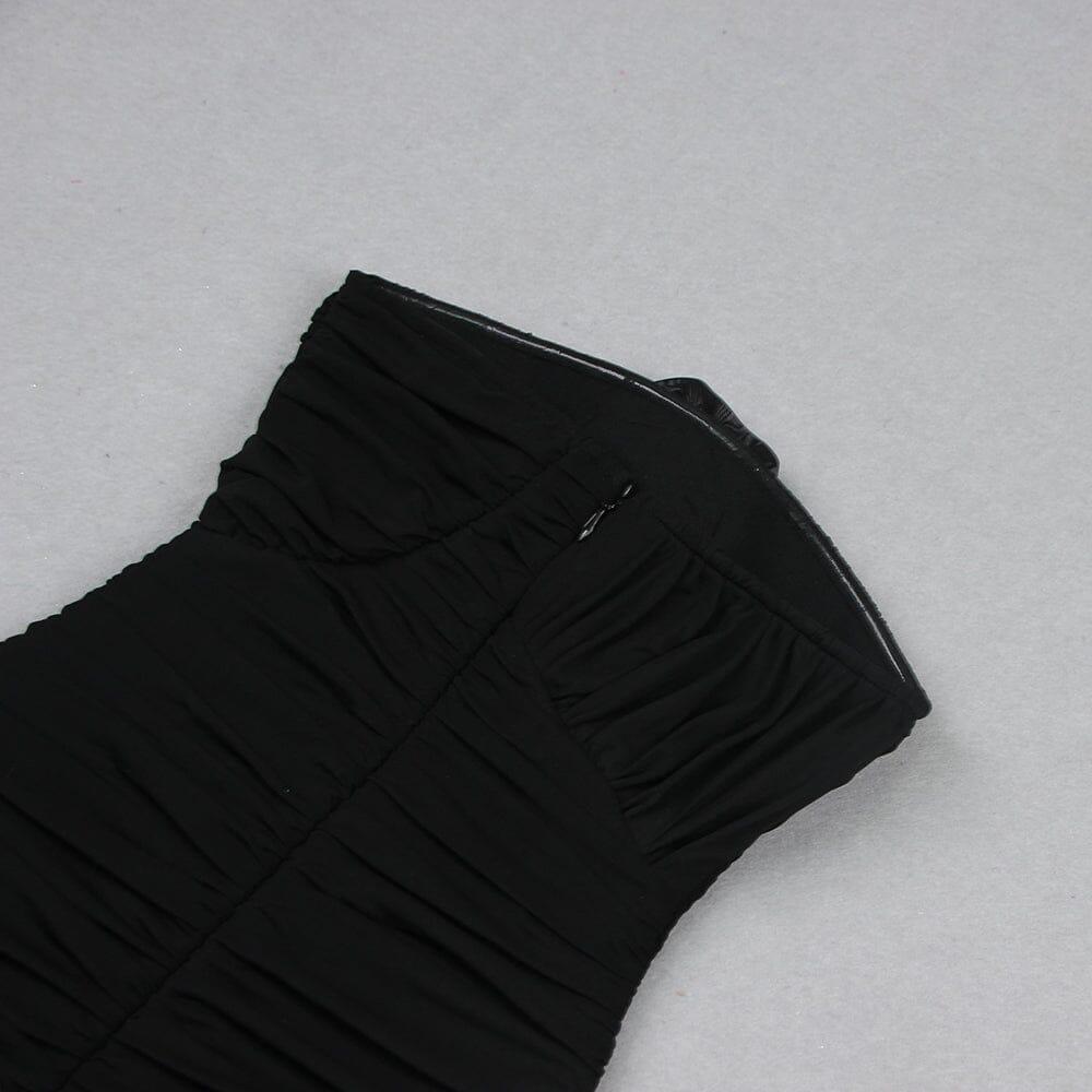 Our strapless mini dress is designed to enhance your figure, with a body-skimming fit that accentuates your curves and creates a flattering silhouette. The black color adds a touch of sophistication and versatility, making it suitable for a variety of occasions.