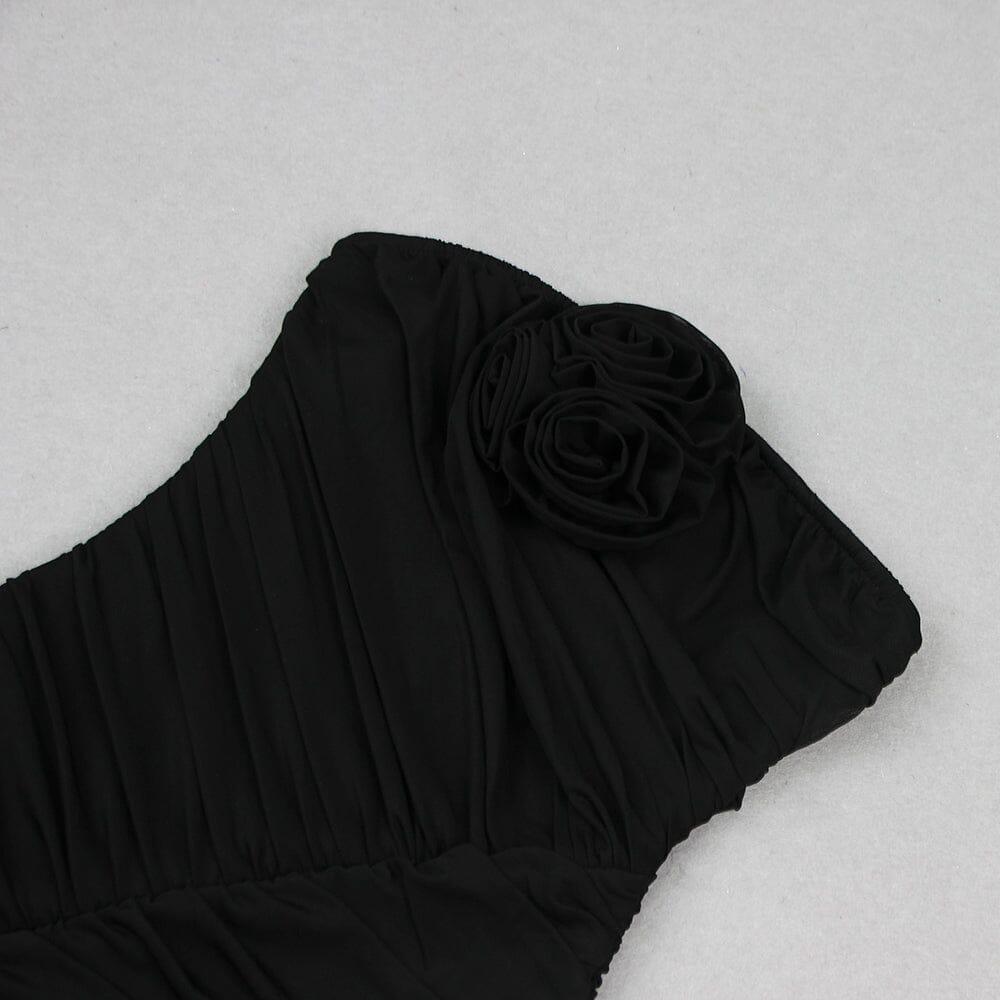 3D FLOWER STRAPLESS MINI DRESS IN BLACK
