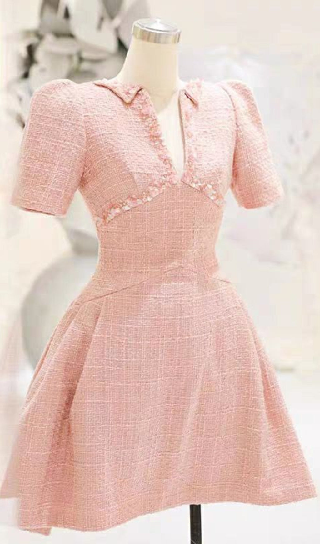 A-LINE BEADED SEQUINE MINI DRESS IN PINK