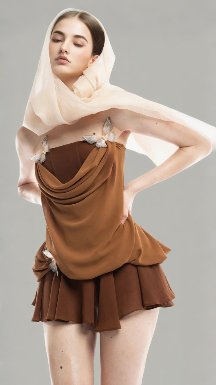 Transform into a stylish butterfly with the Acosta Strapless Butterfly Embellished Mini Dress. This stunning dress features a strapless design and intricate butterfly detailing, making it the perfect choice for any special occasion. Get ready to spread your wings and flutter about in this playful and unique dress!
