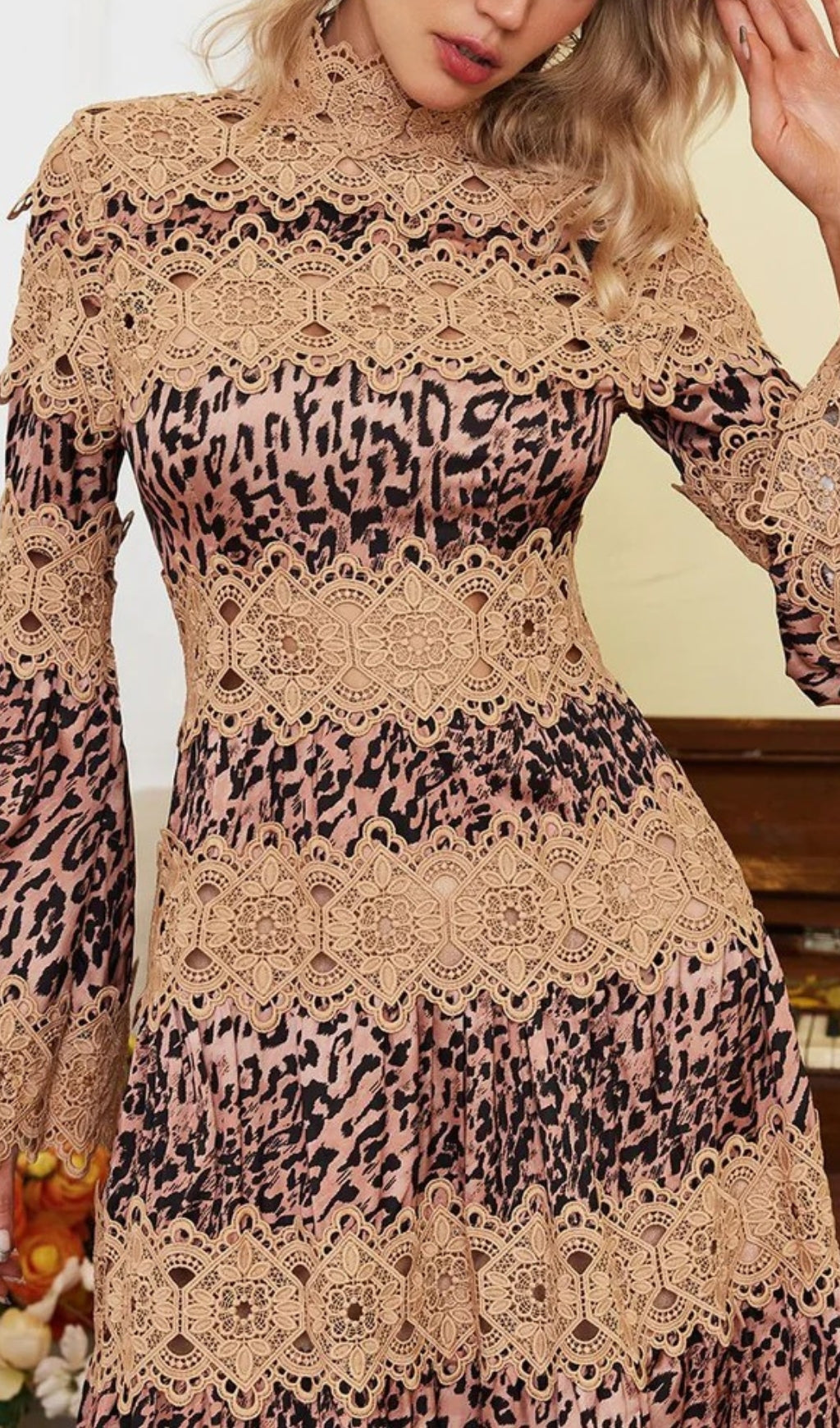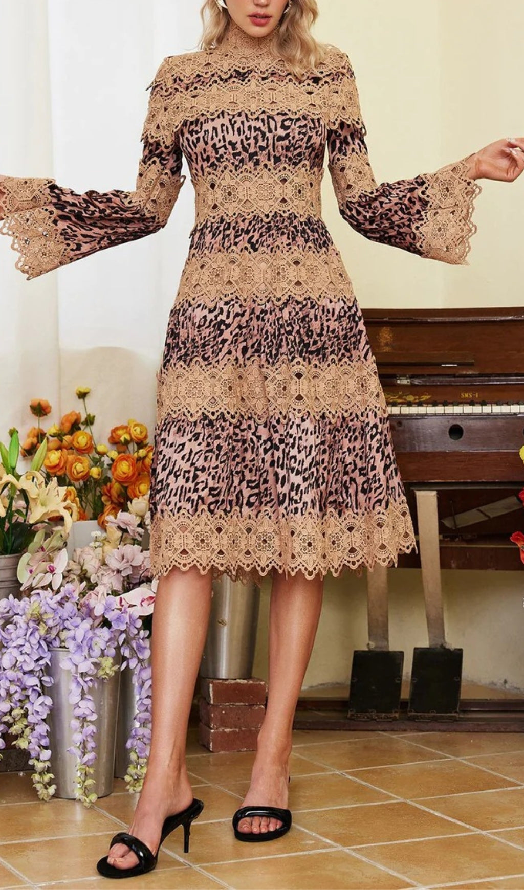 ADALET LEOPARD HOLLOW MIDI DRESS