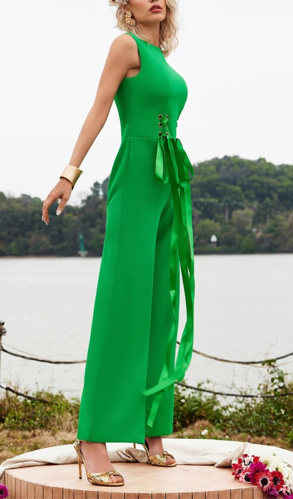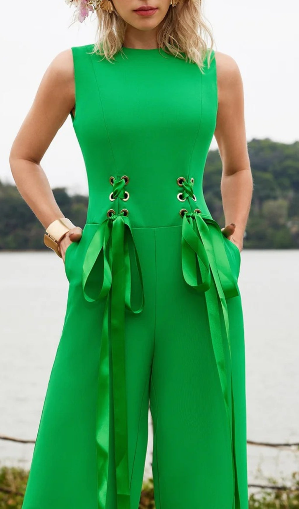 The Sleeveless Lacing Jumpsuit is the perfect combination of style and comfort. The sleeveless design and lacing details add a touch of elegance, while the soft and breathable fabric ensures all-day comfort. With this jumpsuit, you'll effortlessly stand out while feeling your best.