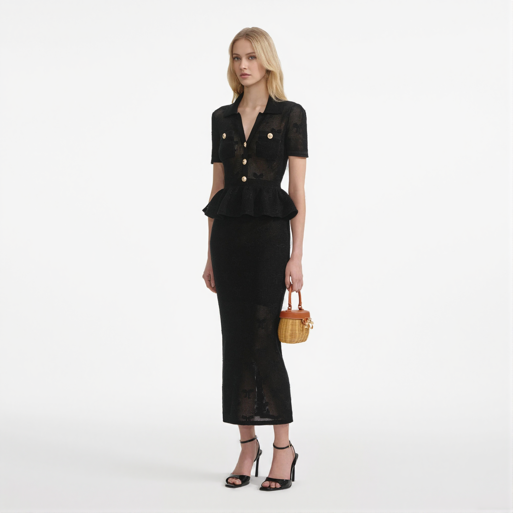 ADELAIDE BLACK BOW CROCHET MIDI DRESS