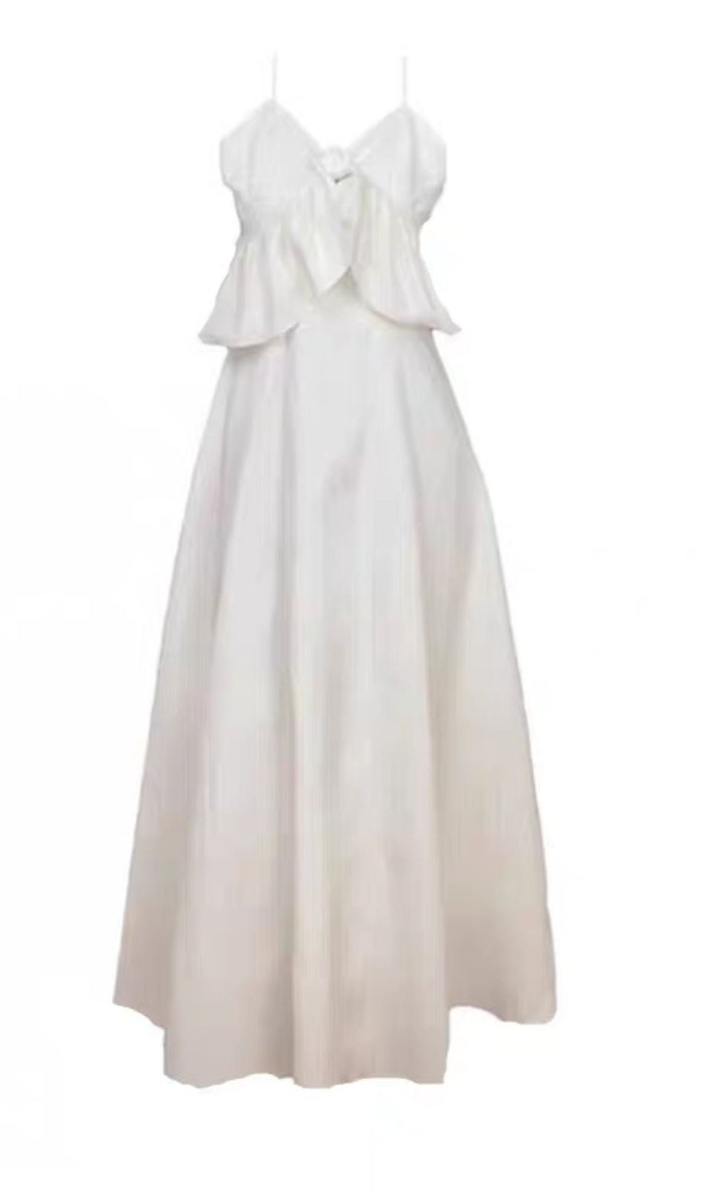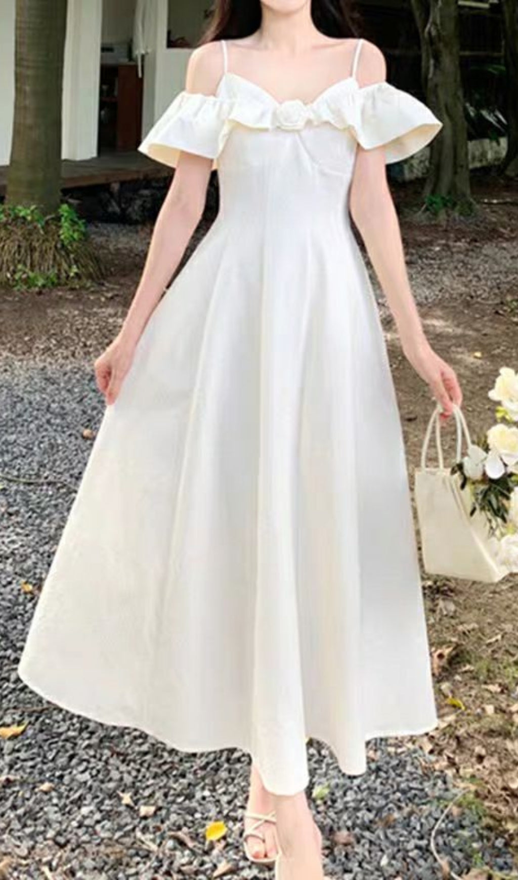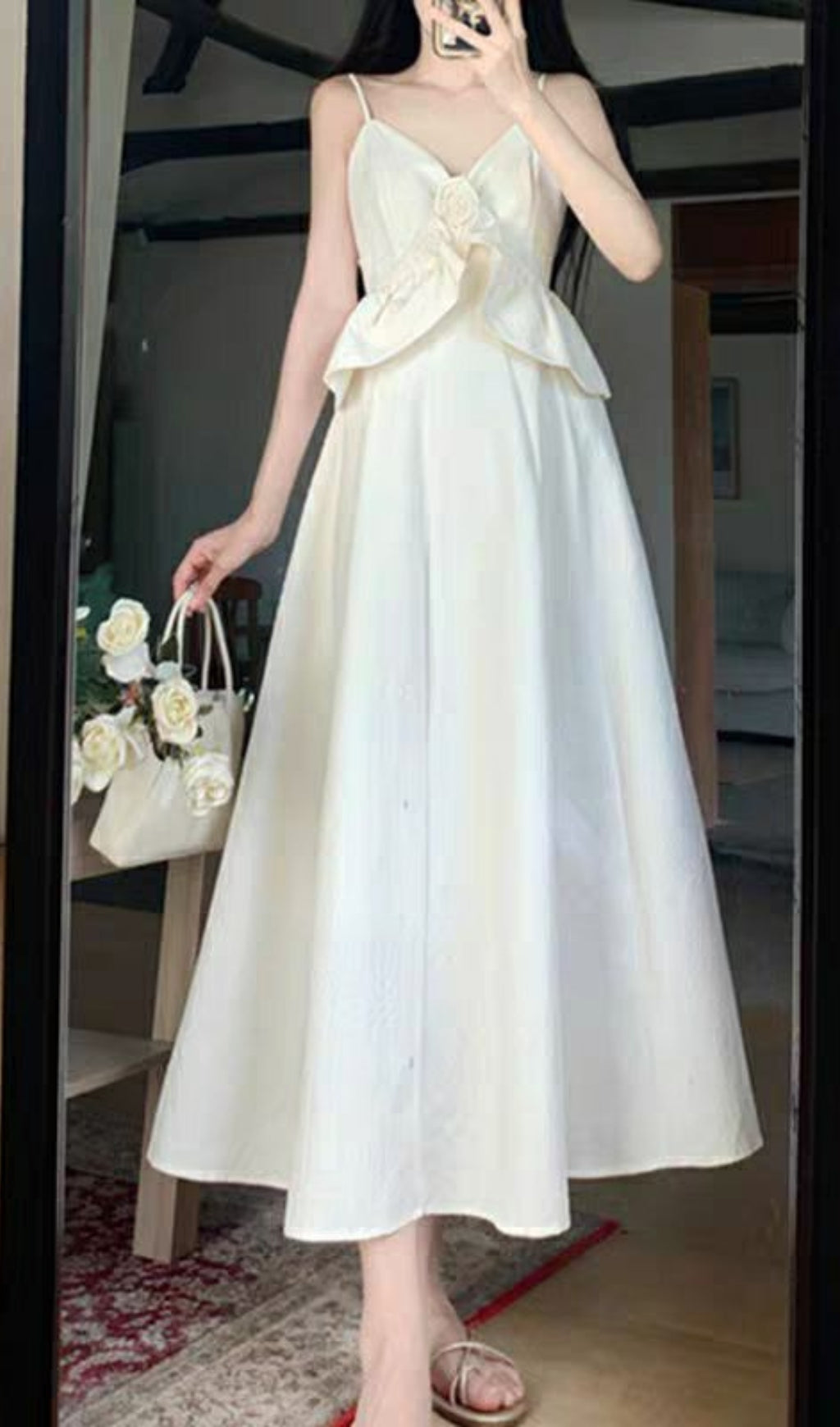 ADJUSTABLE COLLAR STRAP MIDI DRESS IN BEIGE