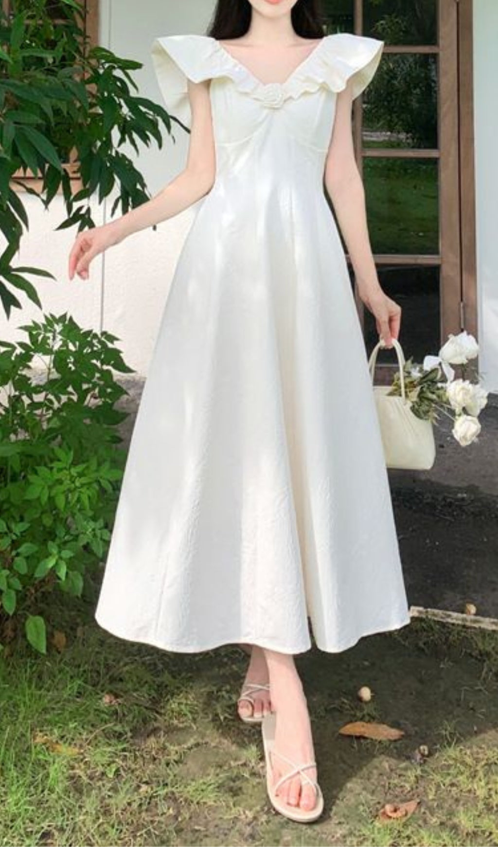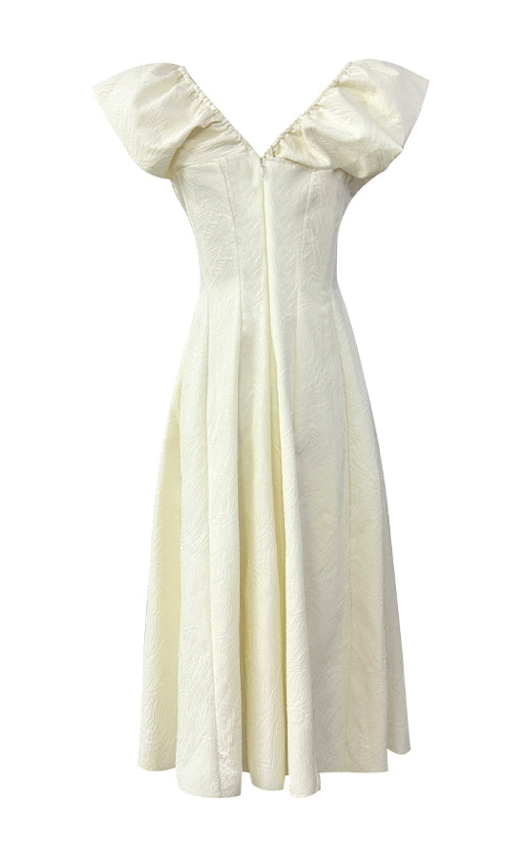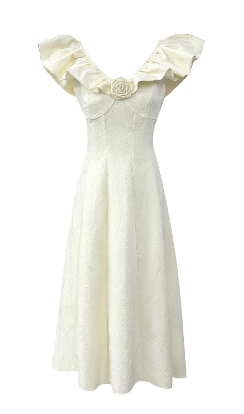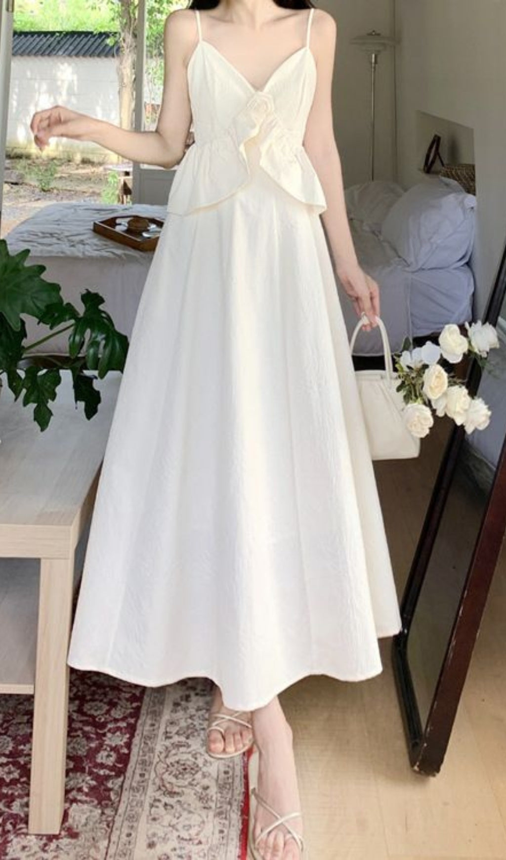 ADJUSTABLE COLLAR STRAP MIDI DRESS IN BEIGE