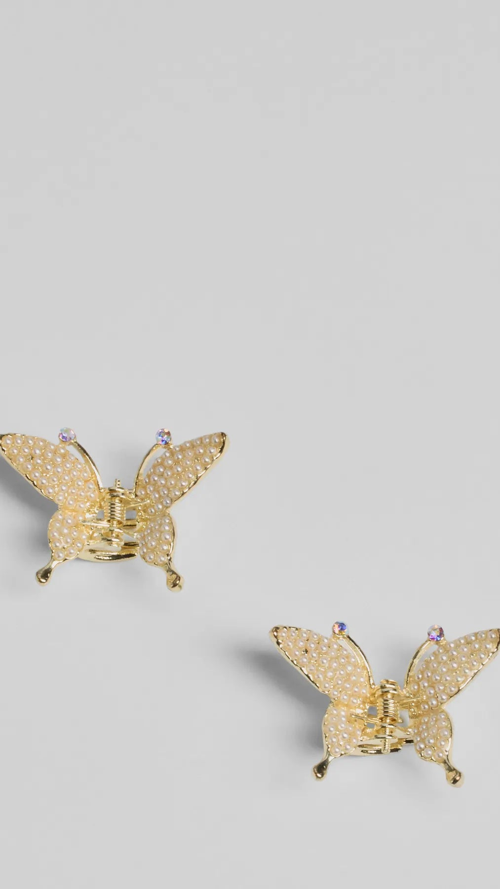 Create adorable looks with this hair clip set of two butterfly hair clips embellished with mini faux pearls and iridescent rhinestones. Perfect for styling with a flirty corset dress and sandals.