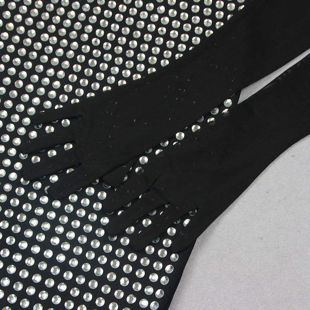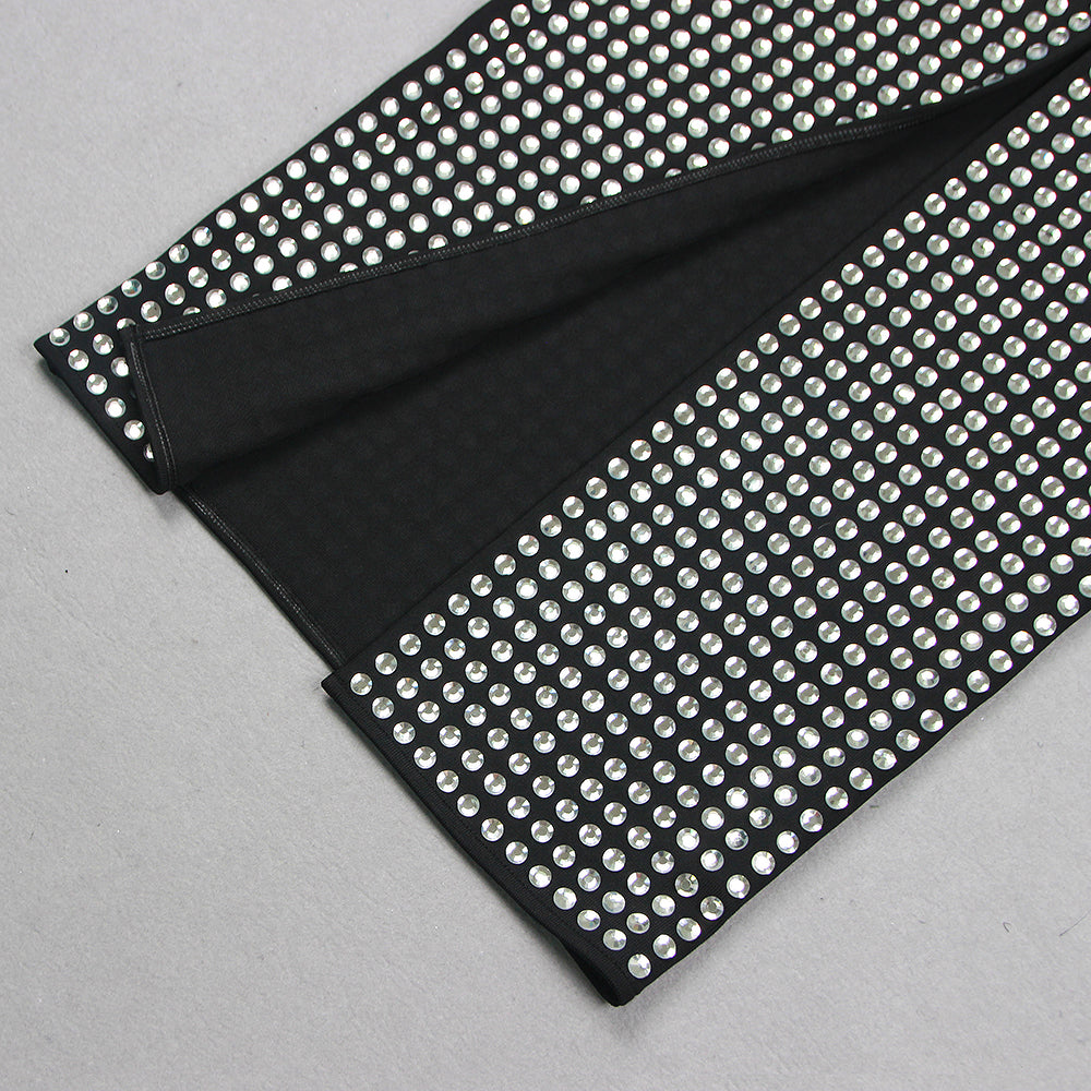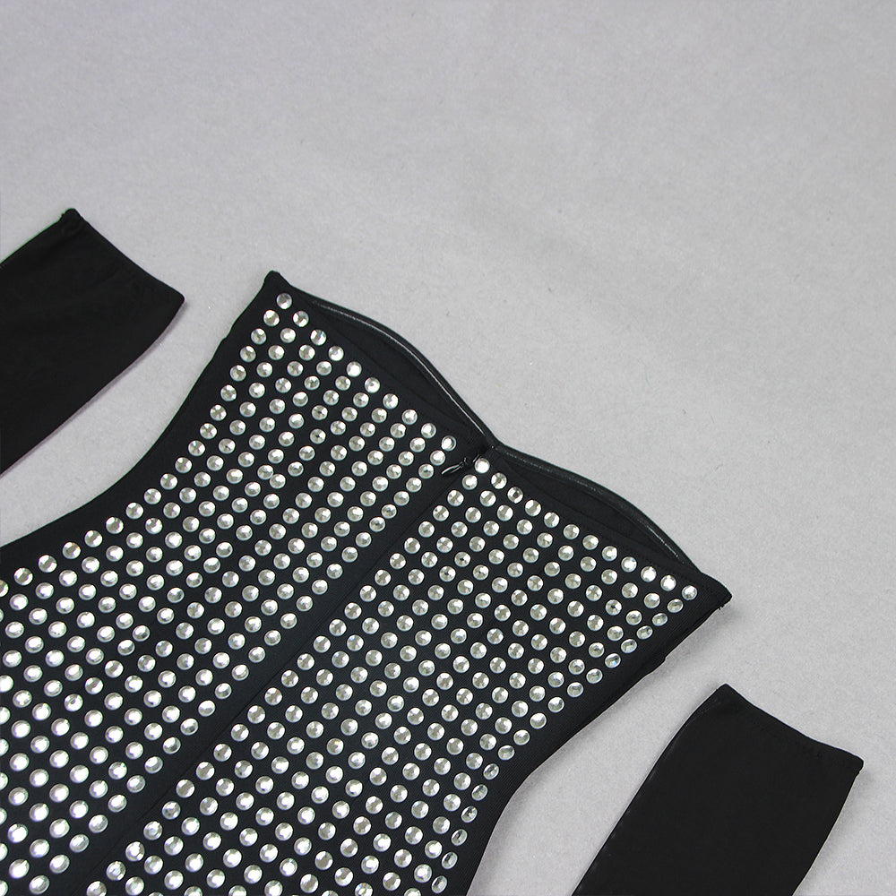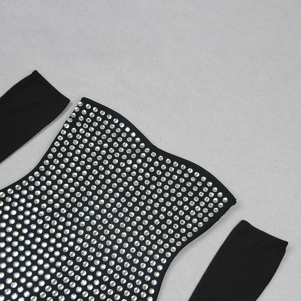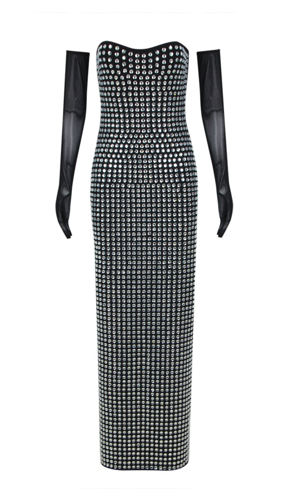ADYSON BLACK STRAPLESS DESIGN CRYSTAL MAXI DRESS