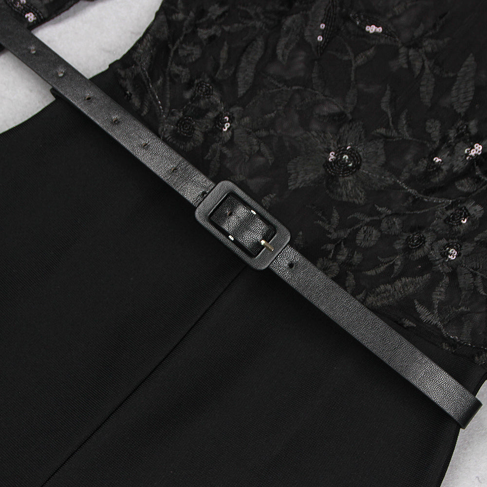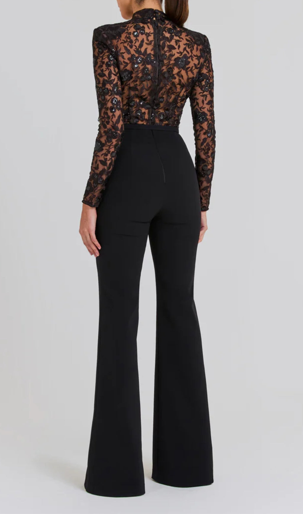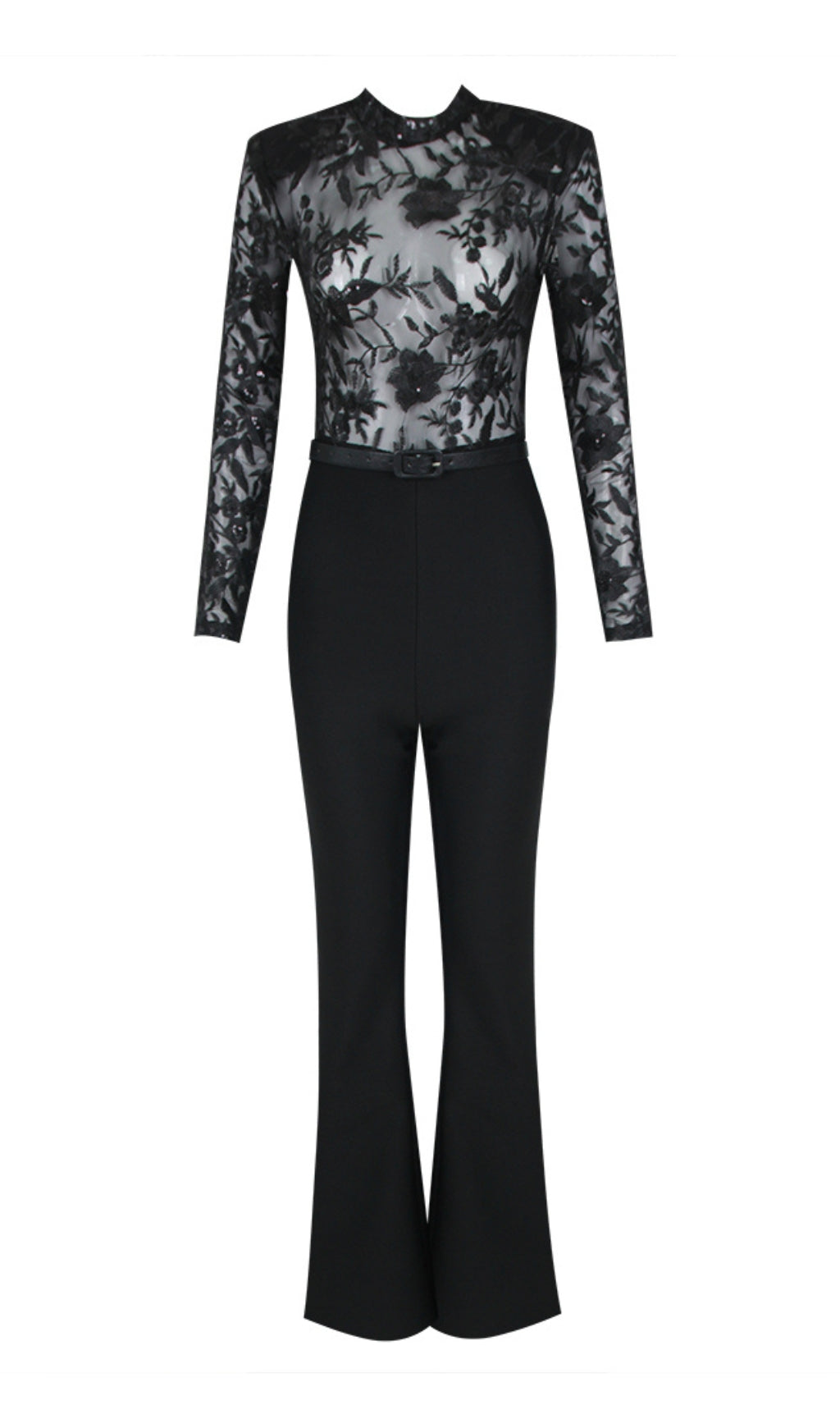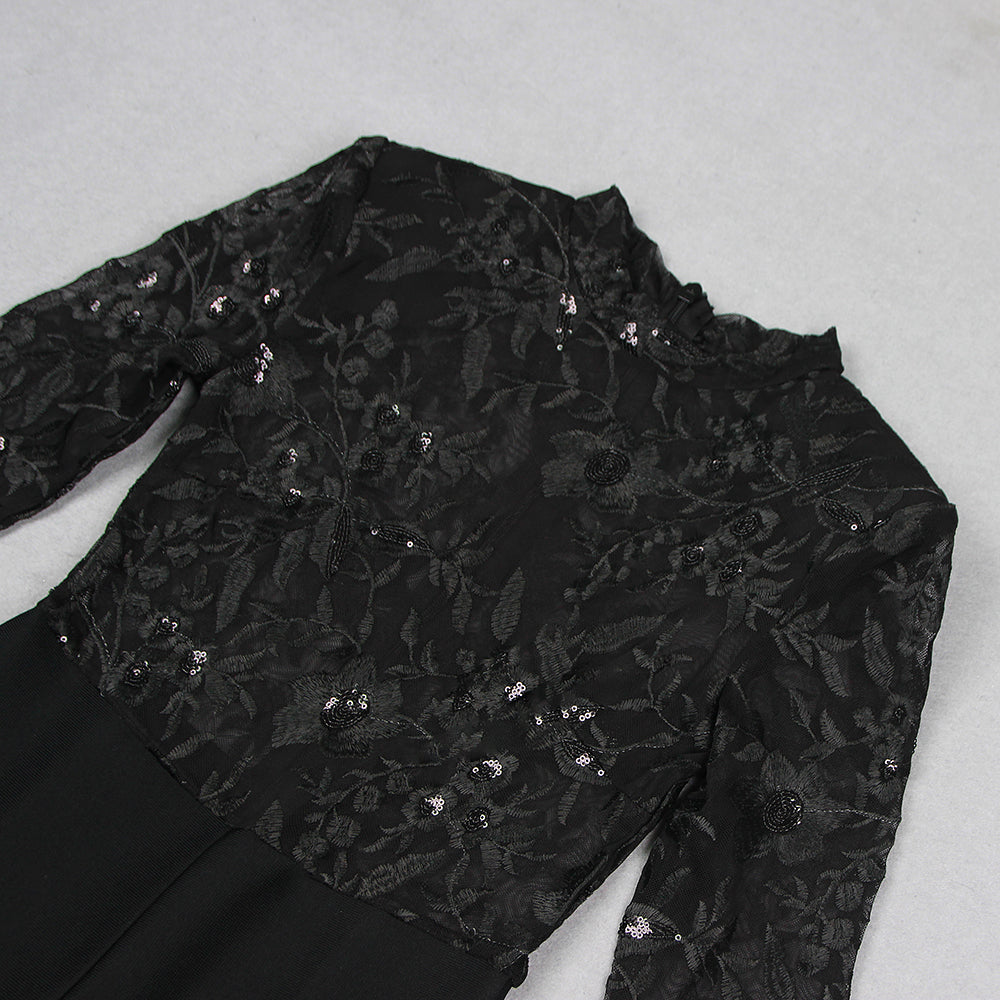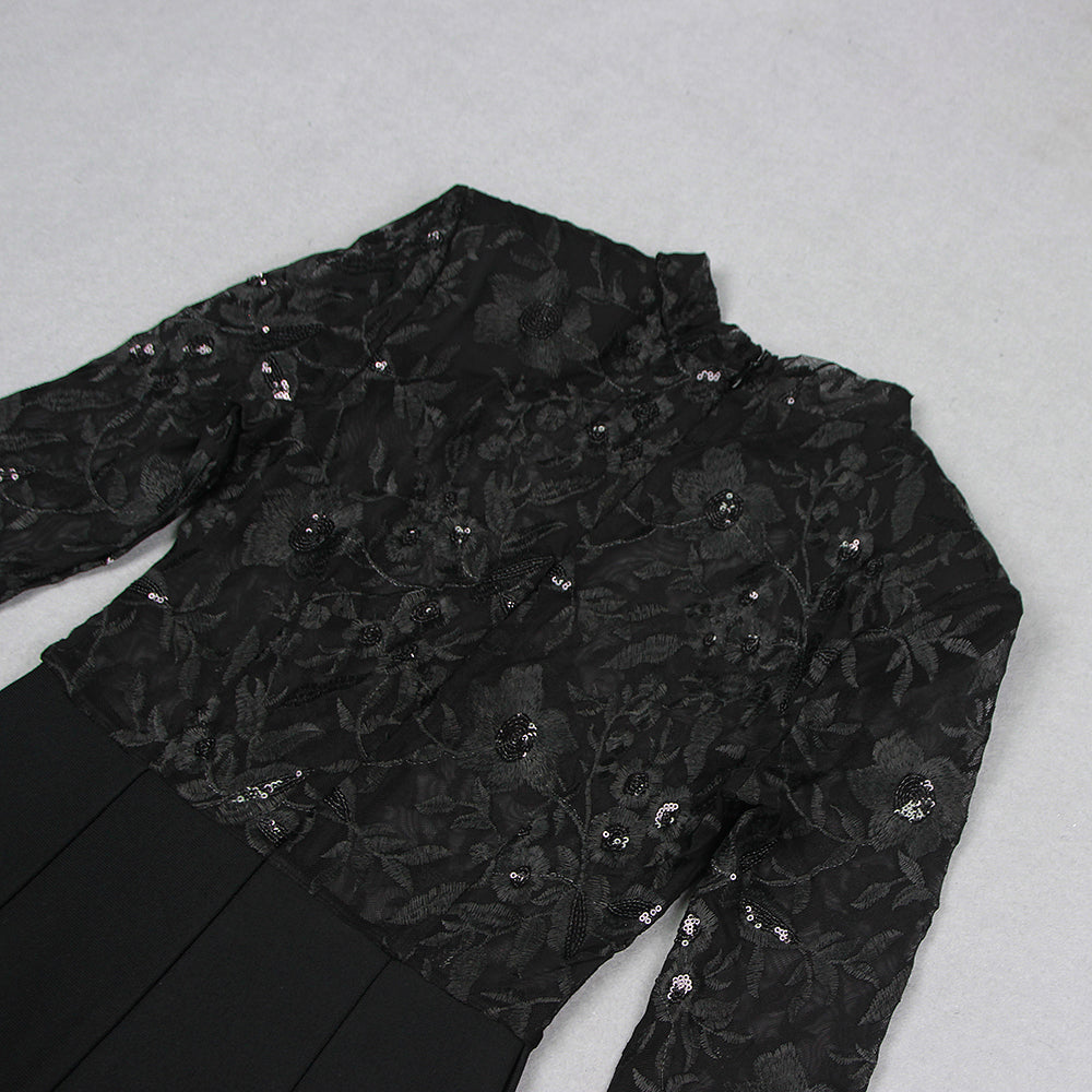 AEGLE BLACK LACE SEQUIN JUMPSUIT