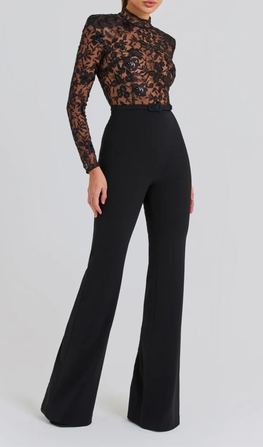 Introducing our AEGLE BLACK LACE SEQUIN JUMPSUIT, the perfect blend of elegance and edge. Show off your unique style with this sleek and sexy jumpsuit, featuring delicate lace and eye-catching sequins. Perfect for a night out or a special occasion, this jumpsuit will have all eyes on you.