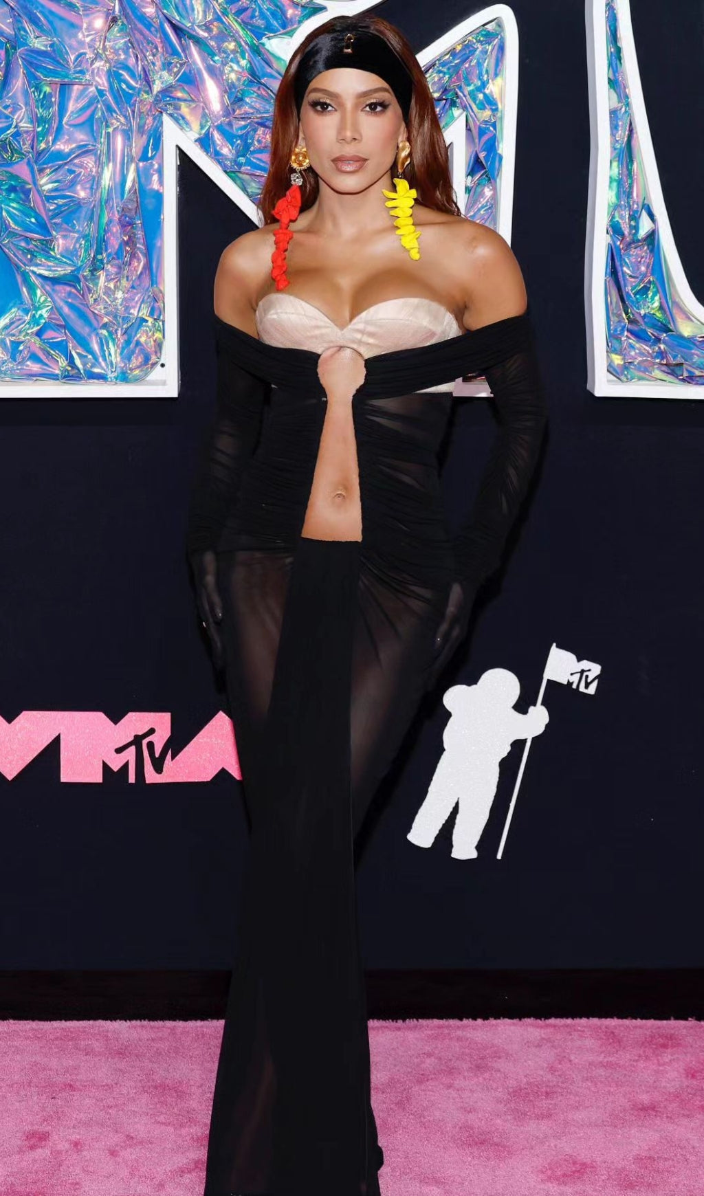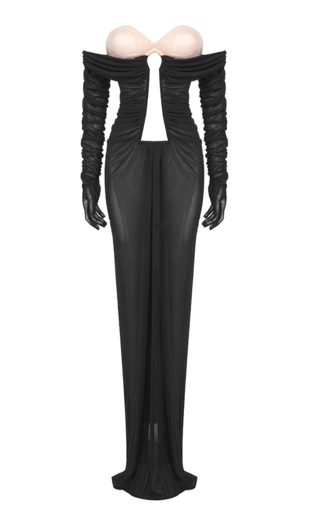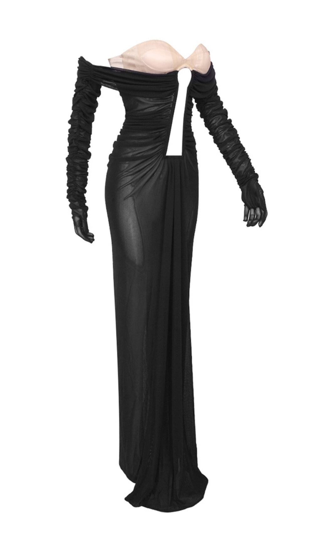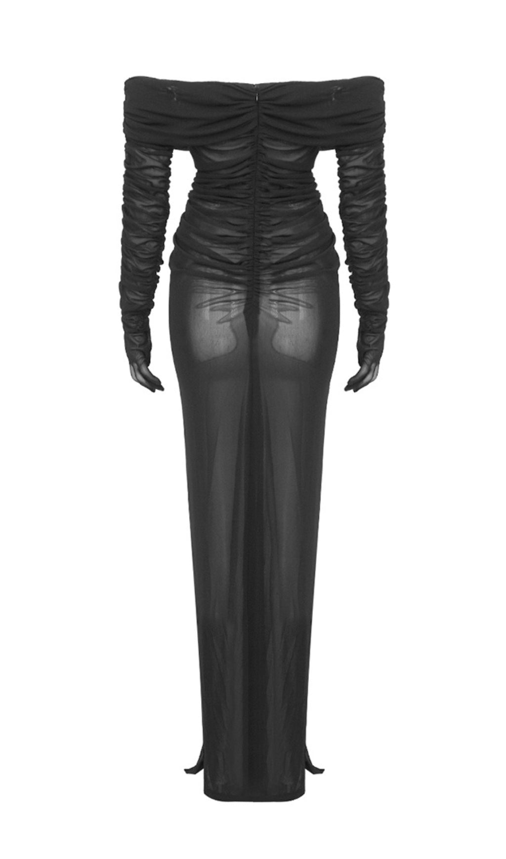 AFANEN BUSTIER RUCHED MESH MAXI DRESS