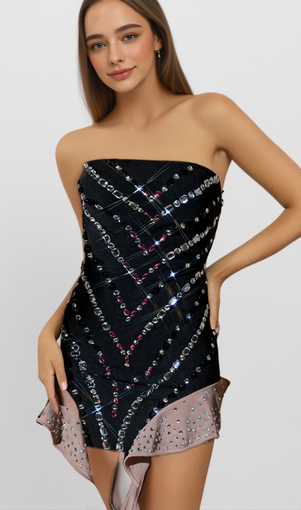 Unleash your inner glam with the Strapless Rhinestone Bandage Mini Dress! This stunning dress features a strapless design and sparkling rhinestone detailing, sure to turn heads and make you stand out at any event. Perfect for a night out or a special occasion, add this dress to your wardrobe and elevate your style!