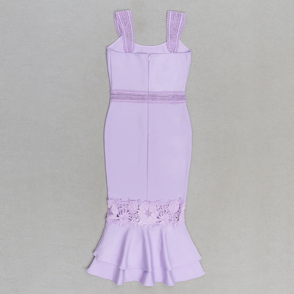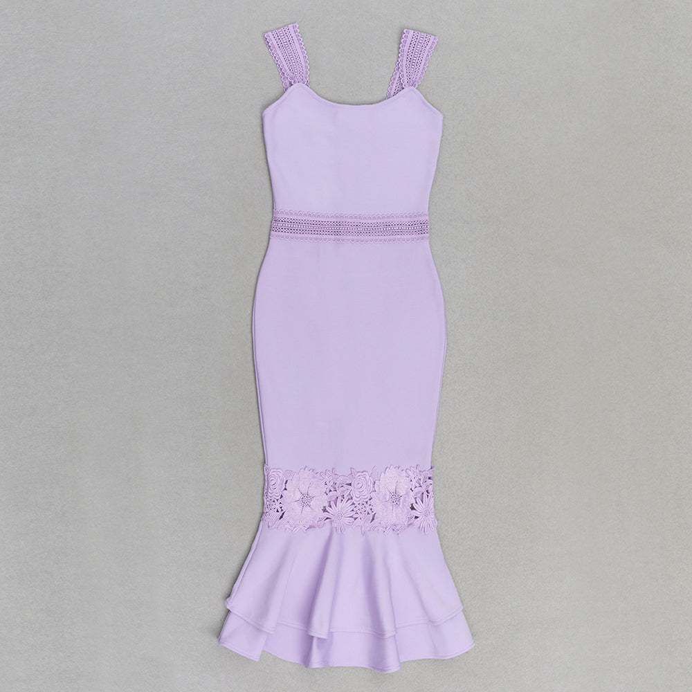 AGATHA MERMAID HEM FLORAL LACE BANDAGE MIDI DRESS IN PURPLE