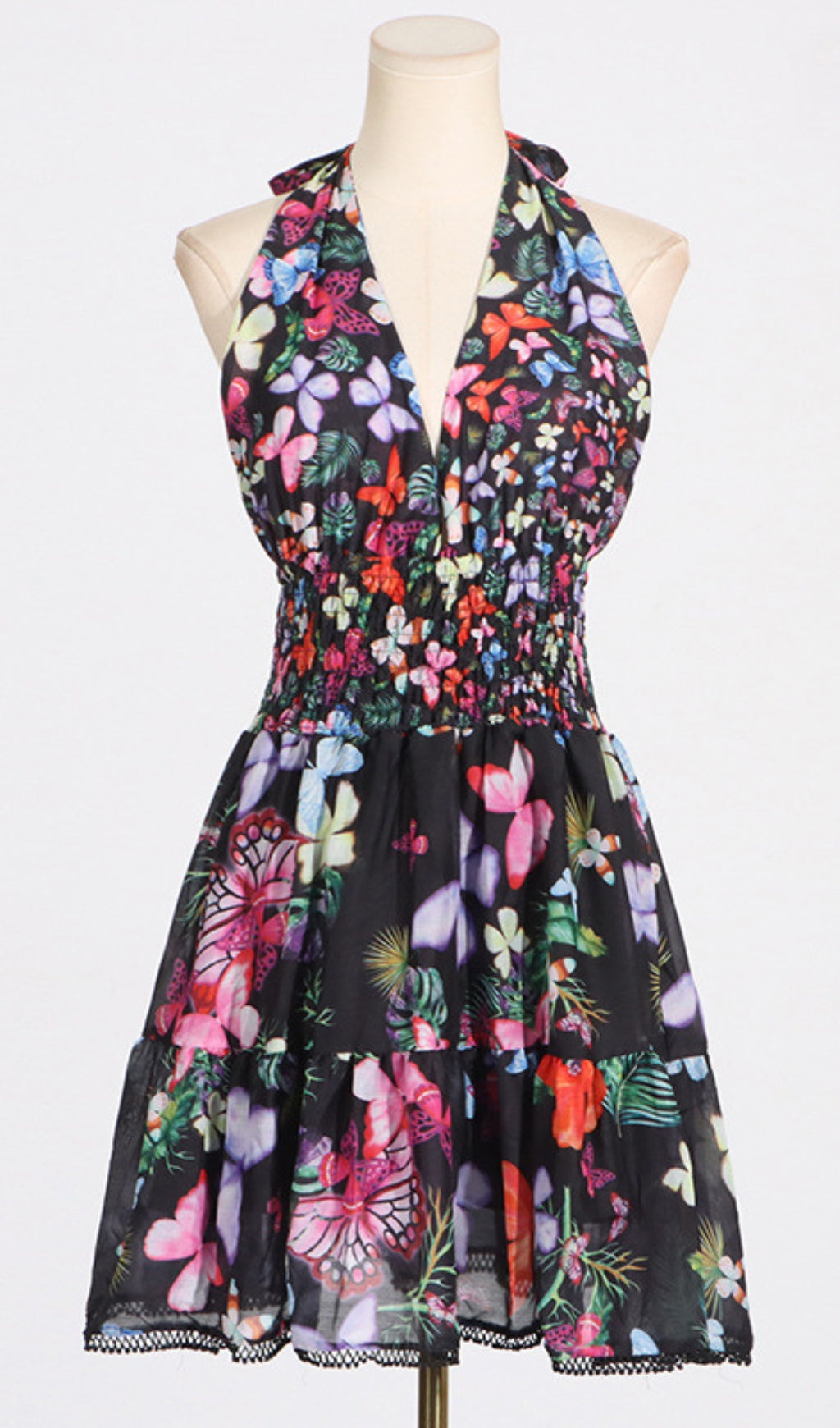Introducing the AGLAEA HALTER FLORAL MINI DRESS, the perfect blend of elegance and flirtiness. This dress features a halter neckline and a beautiful floral pattern, making it a versatile and eye-catching piece for any occasion. Whether you're attending a wedding or a brunch with friends, this dress will make you feel confident and stylish.