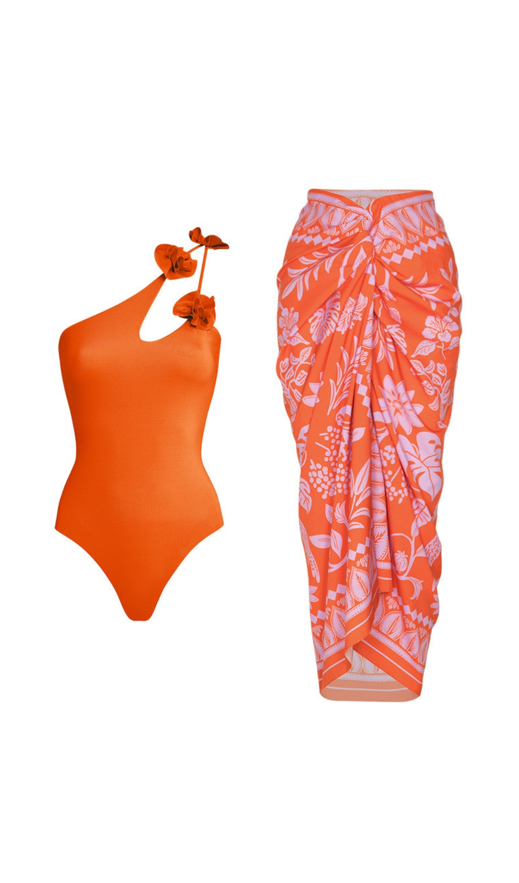AGLAJA ASYMMETRICAL FLOWER SWIMSUIT AND SARONG