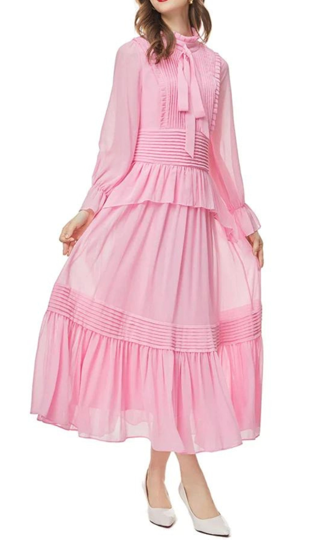 AGNI PINK RUFFLE MAXI DRESS