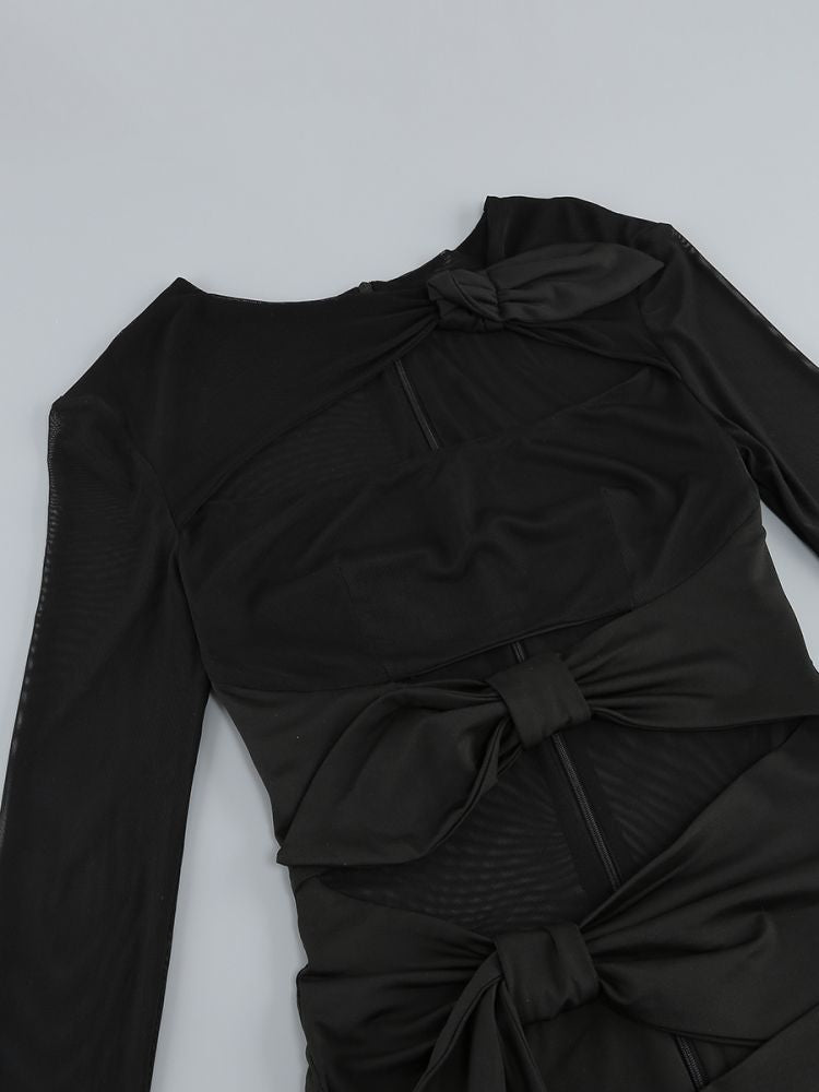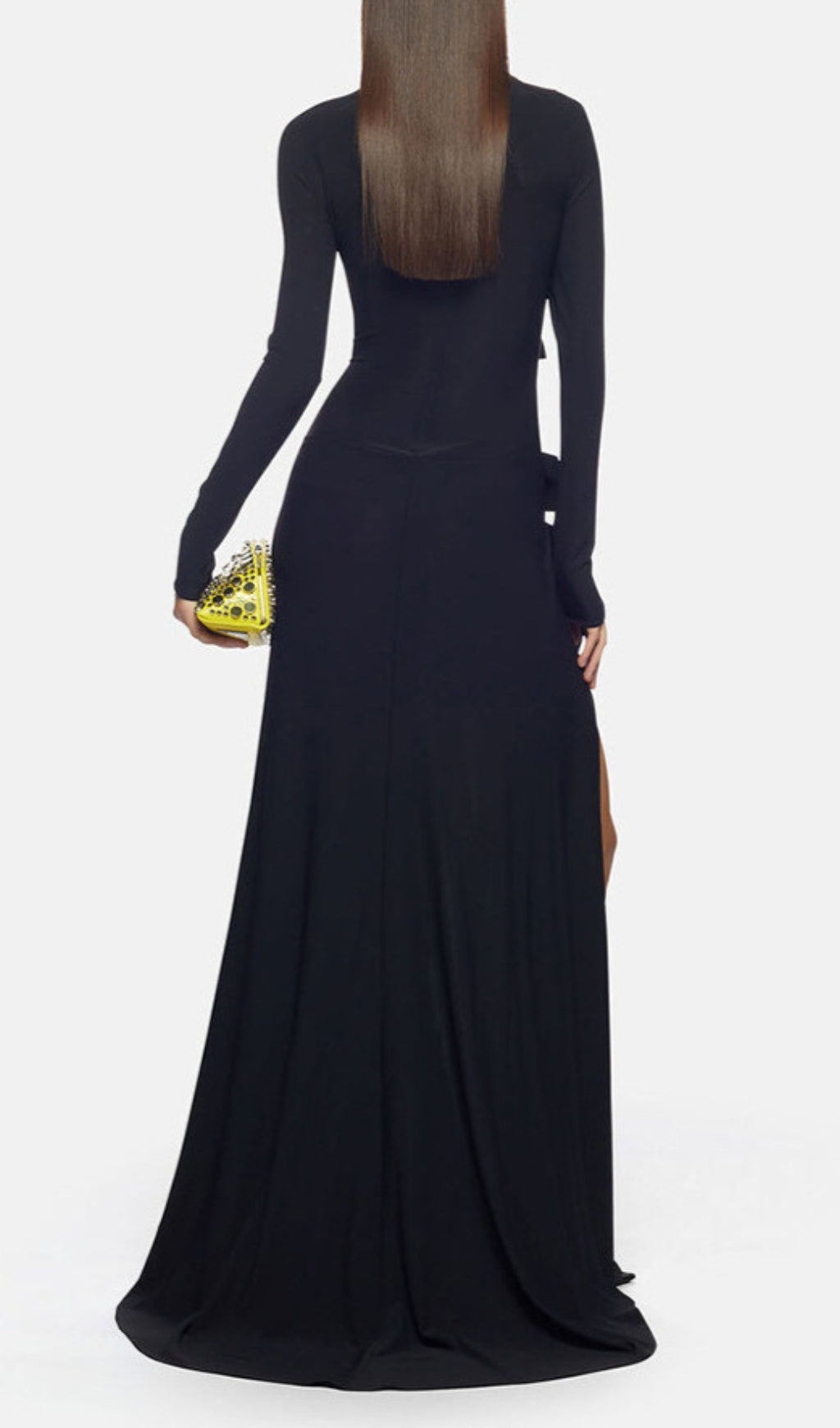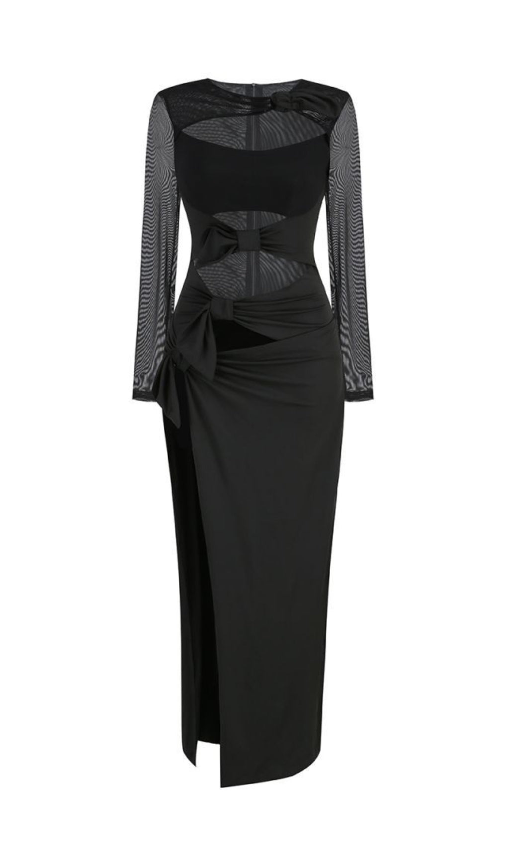 Indulge in luxury with our Long Sleeve Cutout Split Maxi Dress. Crafted with exquisite detail, this dress features long sleeves, cutout accents, and a flattering split design. Elevate your wardrobe with this elegant and sophisticated piece, perfect for any special occasion.