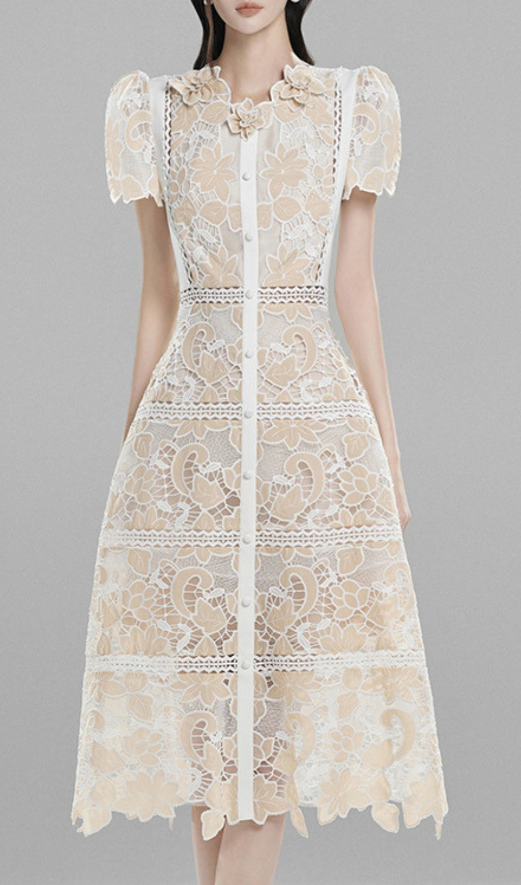 AHMED EMBROIDERY LACE MIDI DRESS
