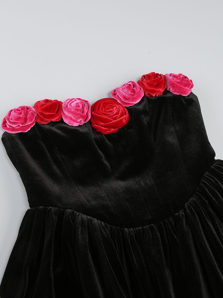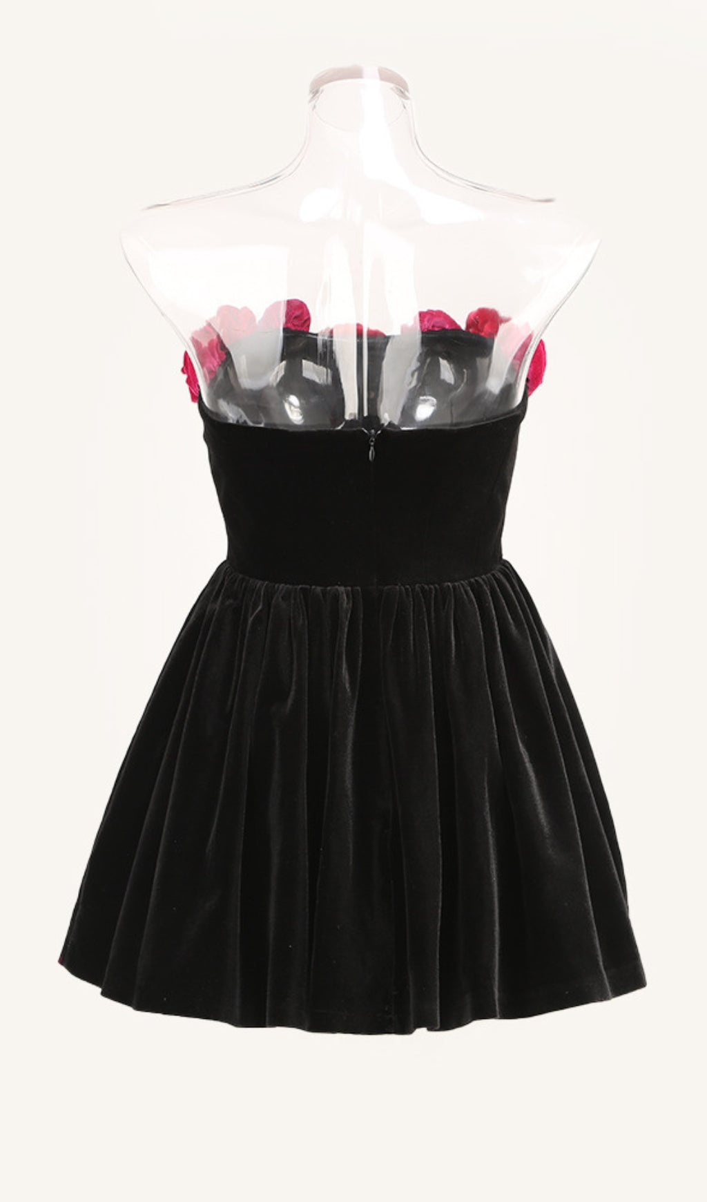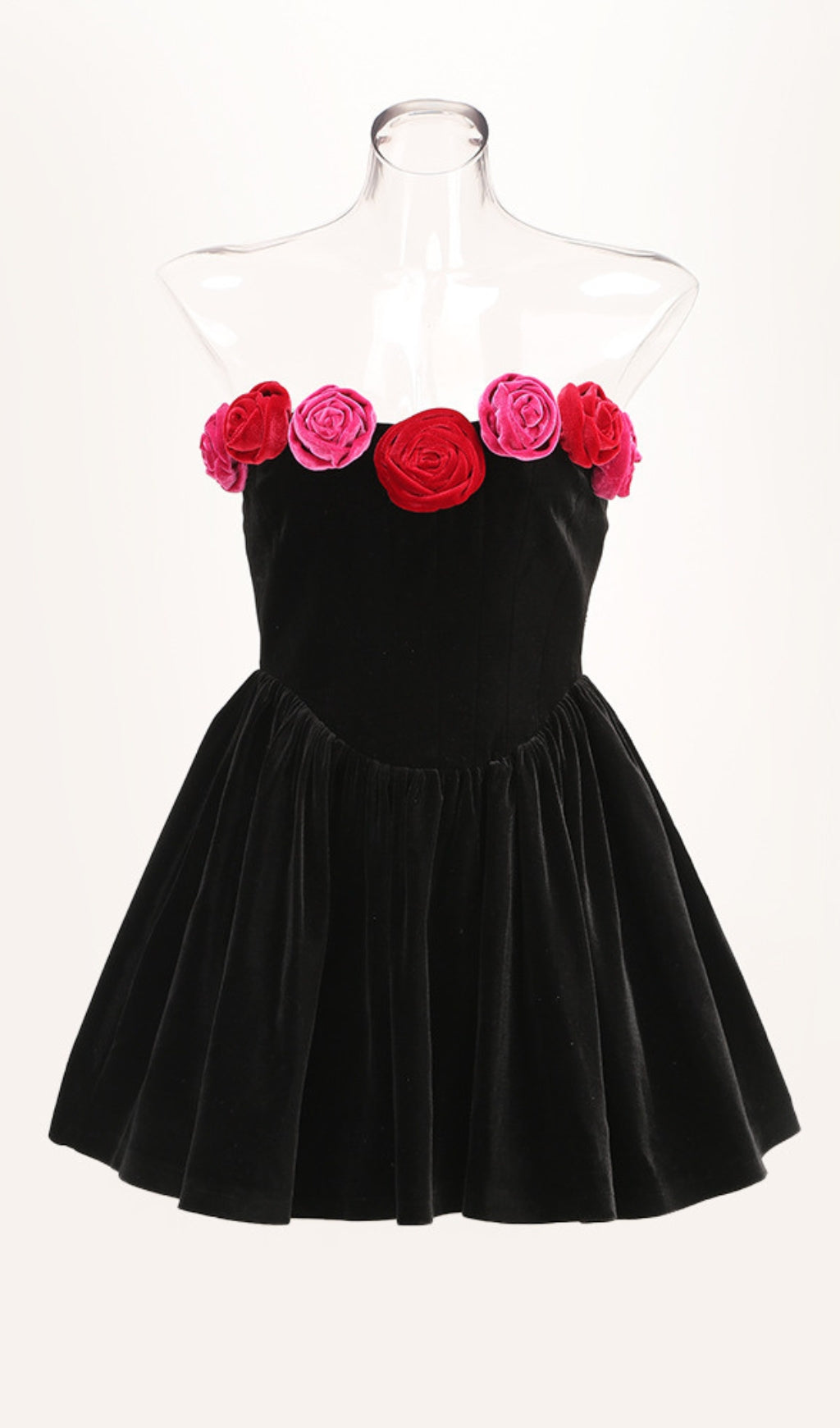 AIBHILIN FLOWER EMBELLISHED VELVET DRESS