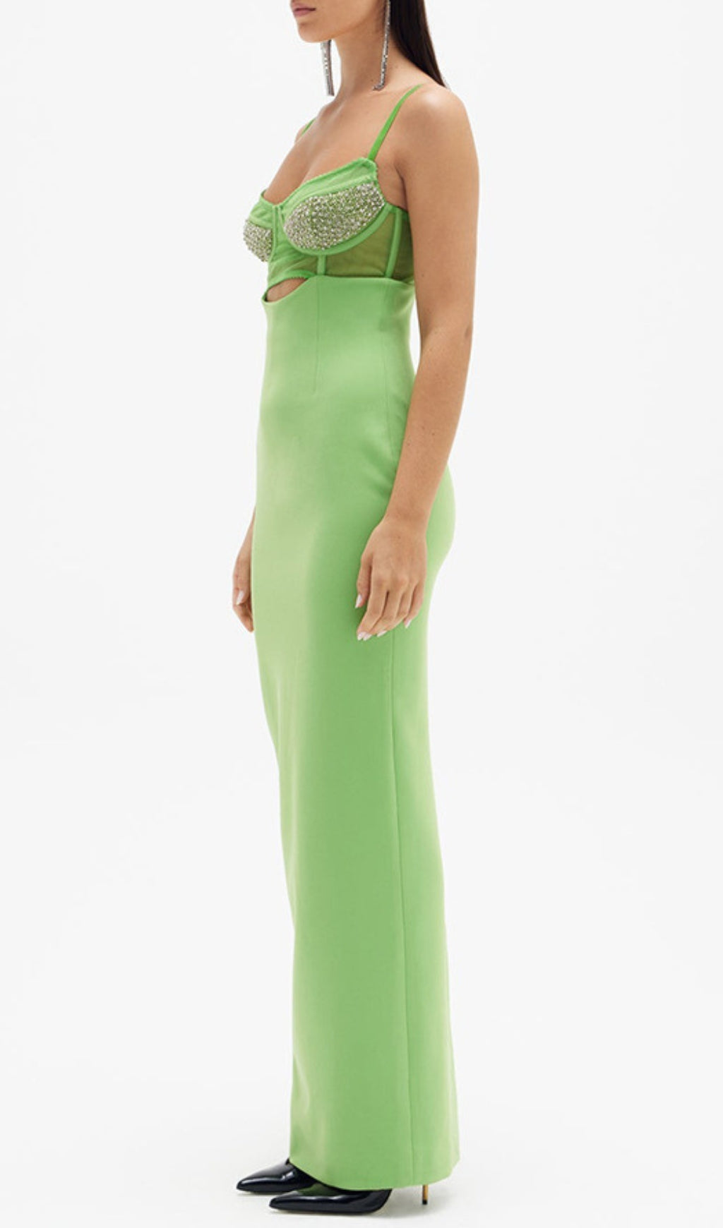 AIDEEN GREEN BEADING BANDAGE MIDI DRESS
