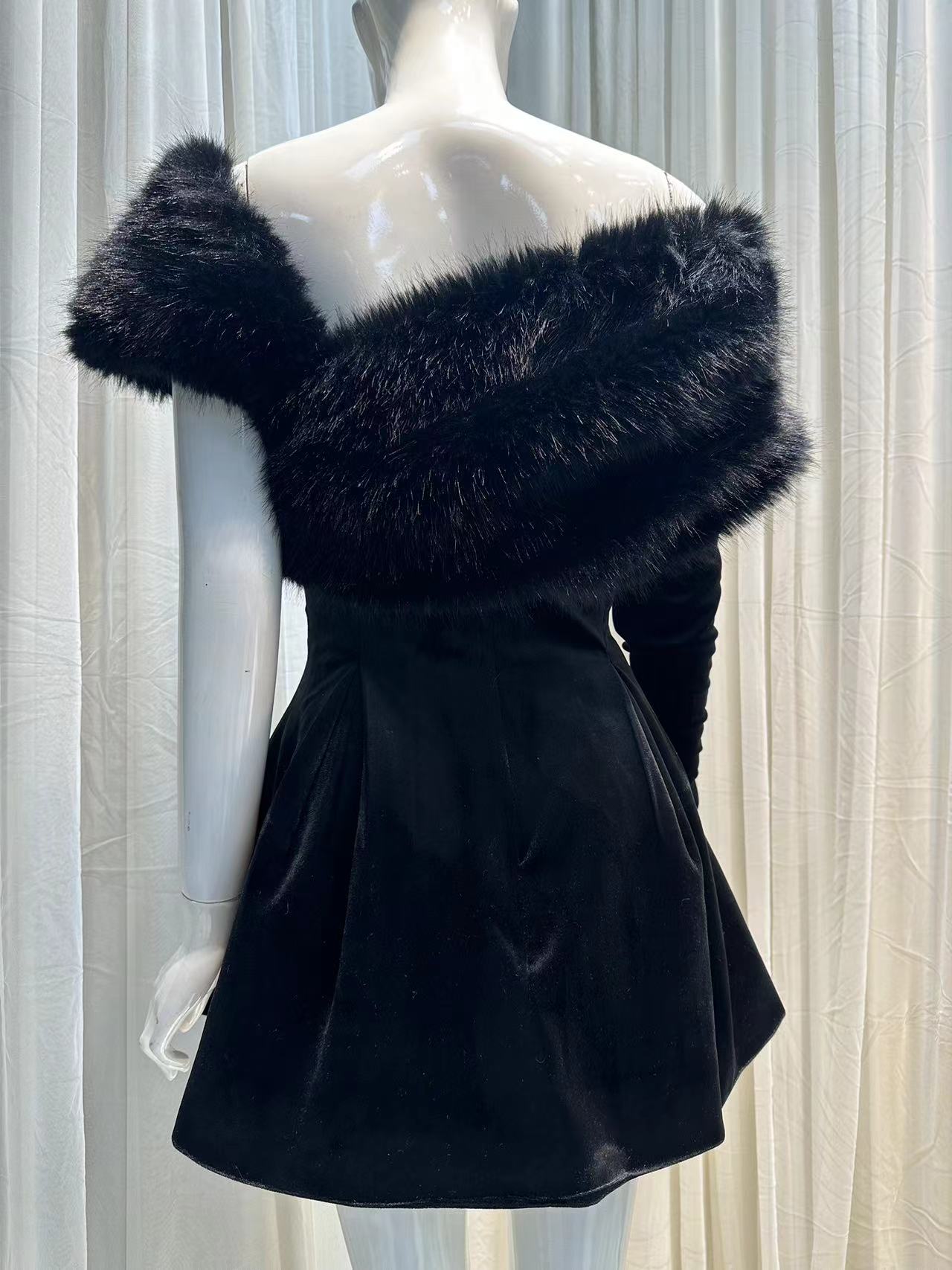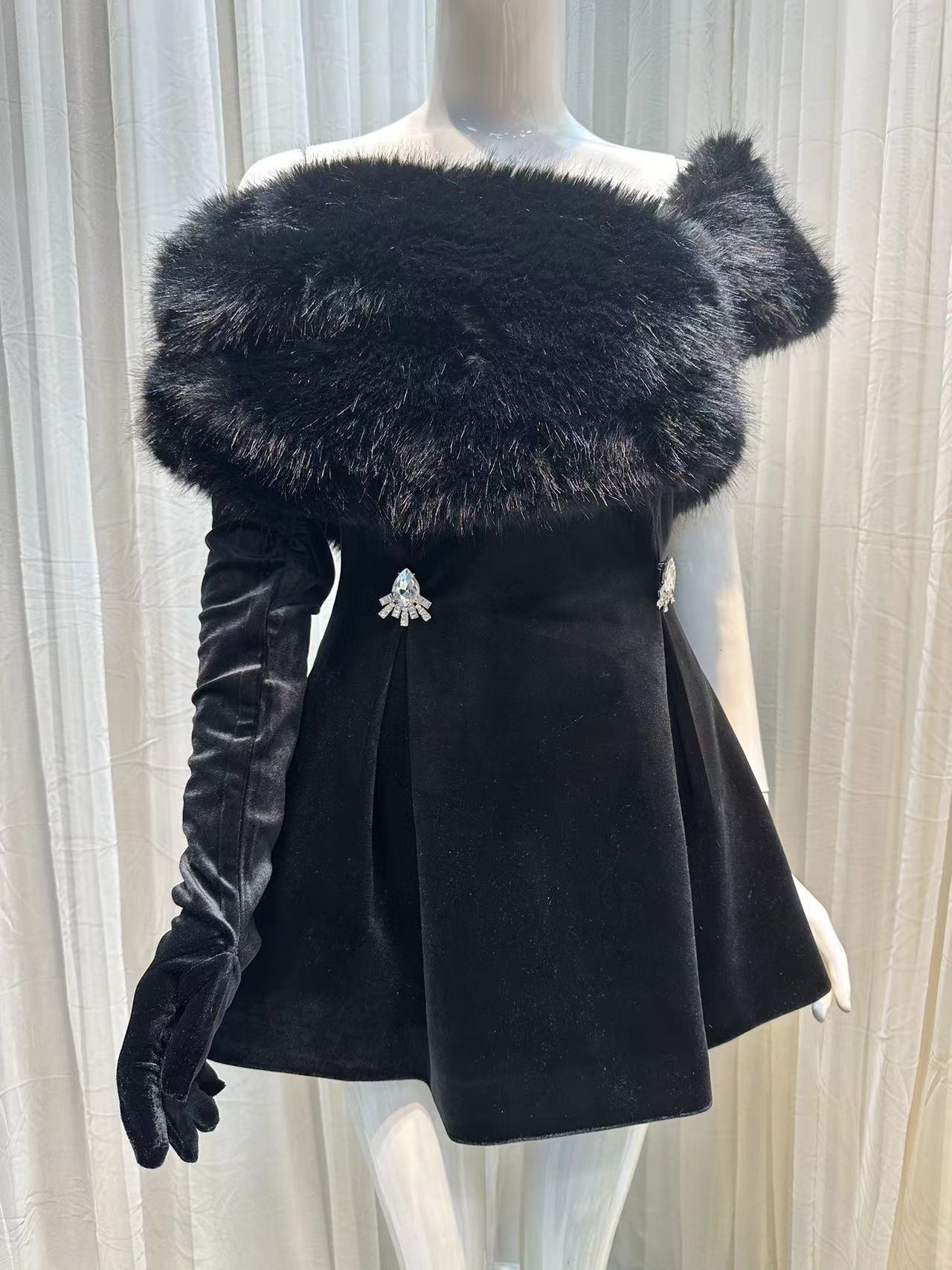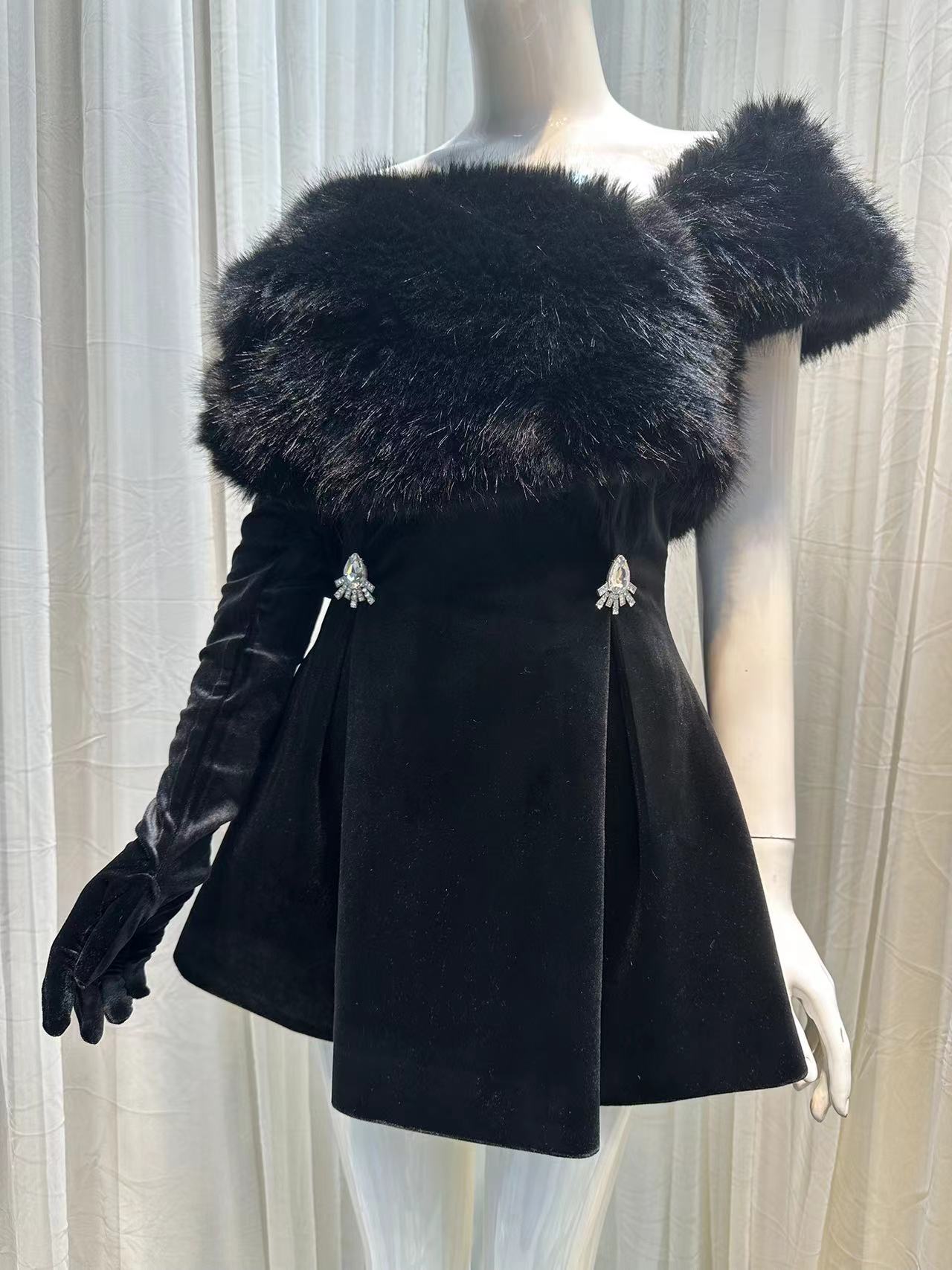 AINHOA BLACK VELVET MINI DRESS