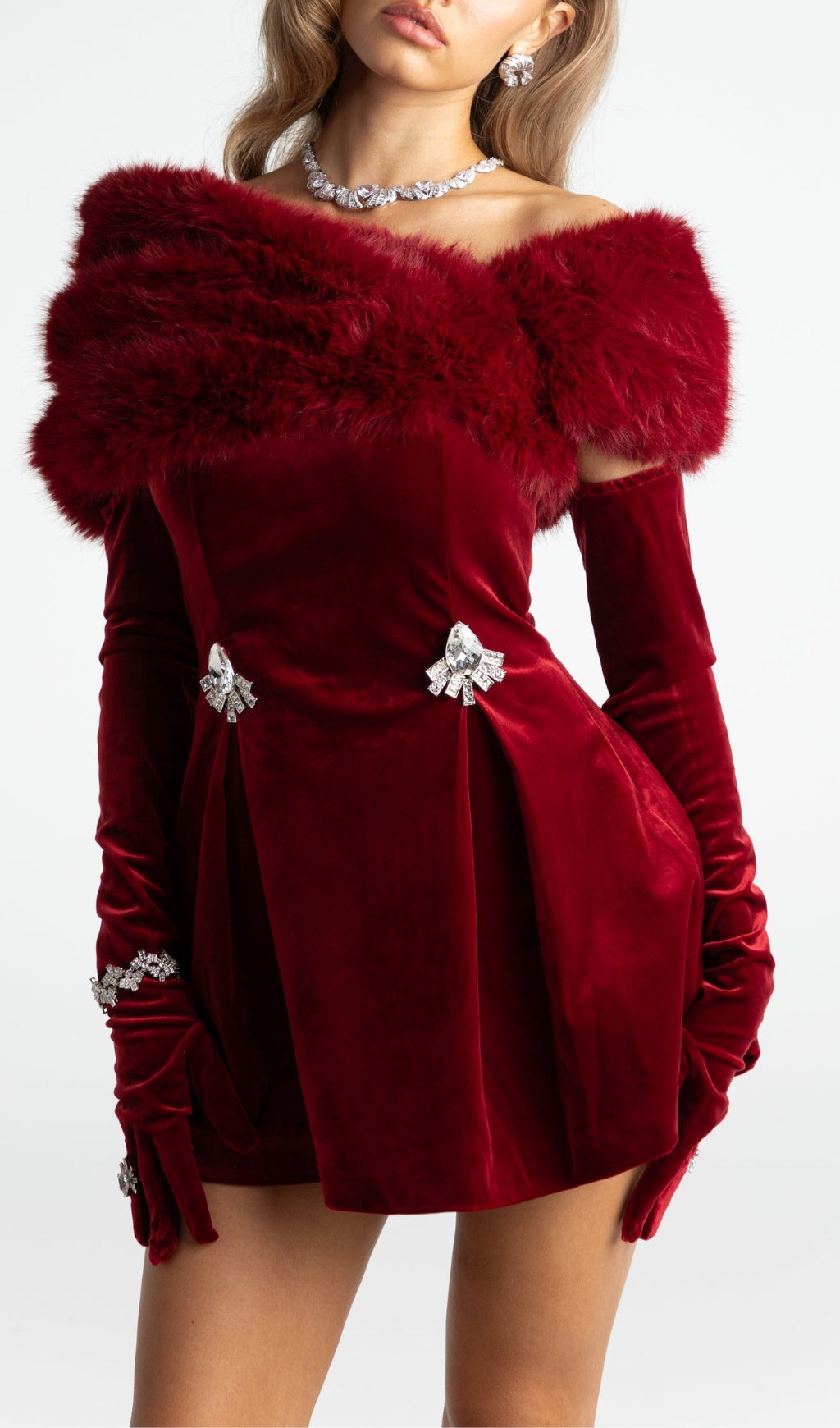 Introducing the AINHOA RED VELVET MINI DRESS: the perfect party-ready piece to make an unforgettable entrance! This gorgeous mini dress is crafted from luxurious velvet, so you can strut your stuff in ultimate glamour and style. Channelling your inner diva with this dress is easy - what are you waiting for?!