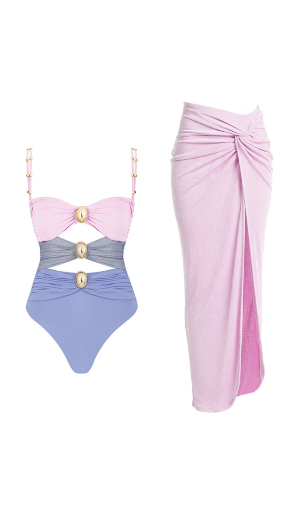 AIZA PINK CUTOUT ONE PIECE SWIMSUIT AND SARONG