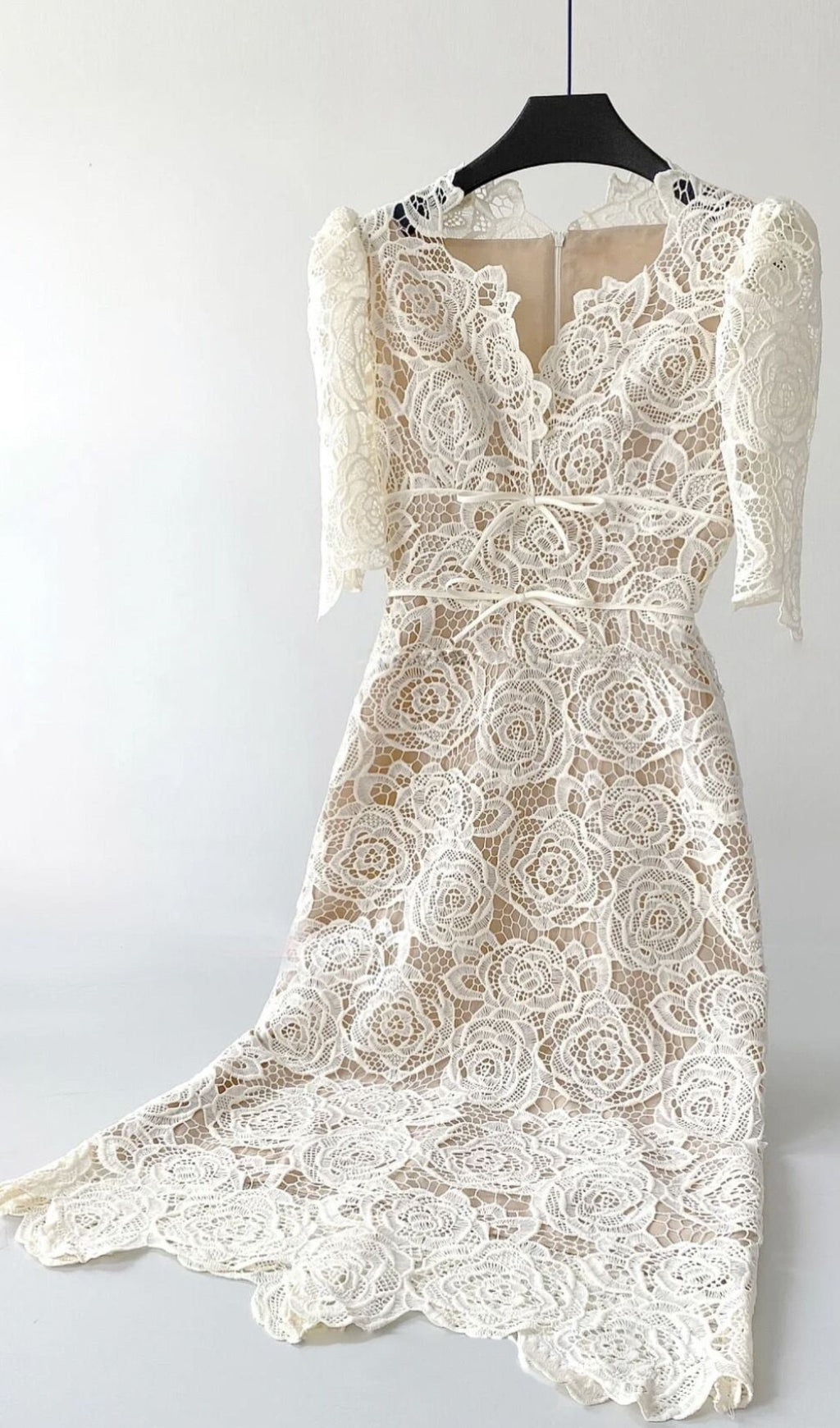 Get ready to turn heads with our ALAYJA WHITE ROSE EMBROIDERY MIDI DRESS! Featuring delicate white rose embroidery, this midi dress is perfect for any occasion. Embrace your inner fashionista and stand out from the crowd with this unique and playful piece!