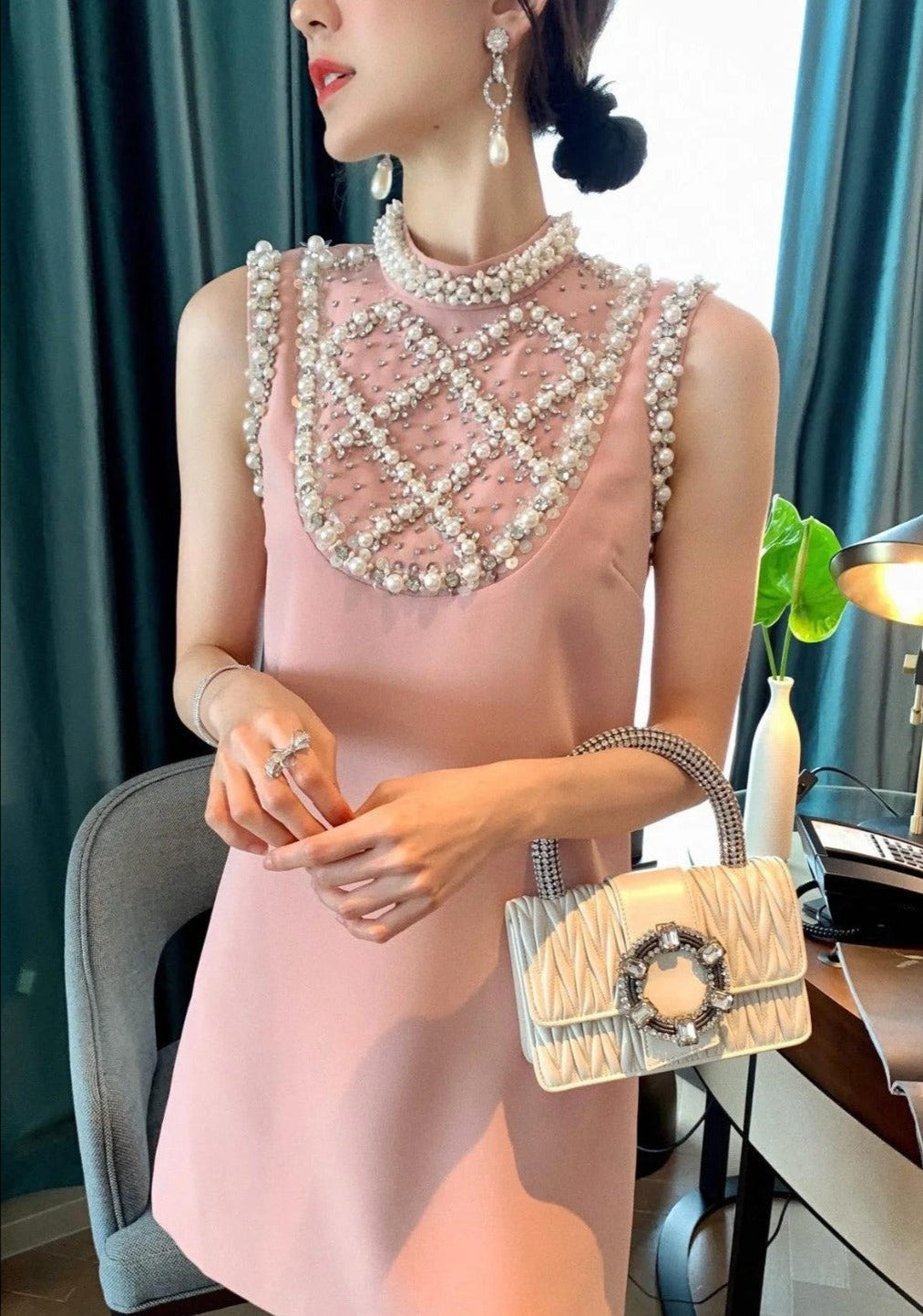 ALBERTINE PEARL-EMBELLISHED MINI DRESS