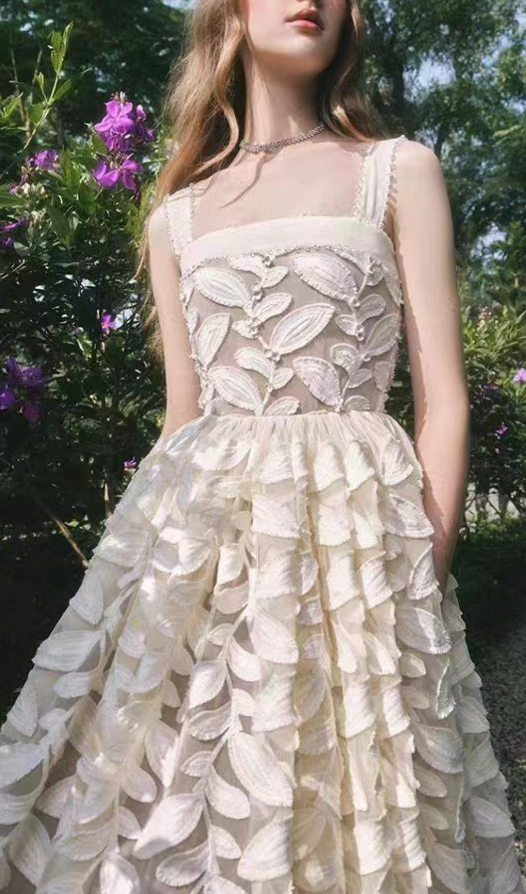 ALBIA WHITE EMBELLISHED MIDI DRESS