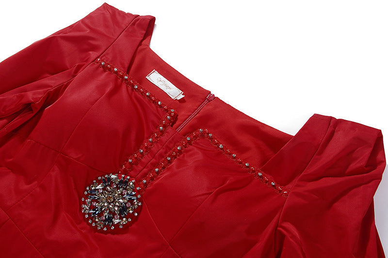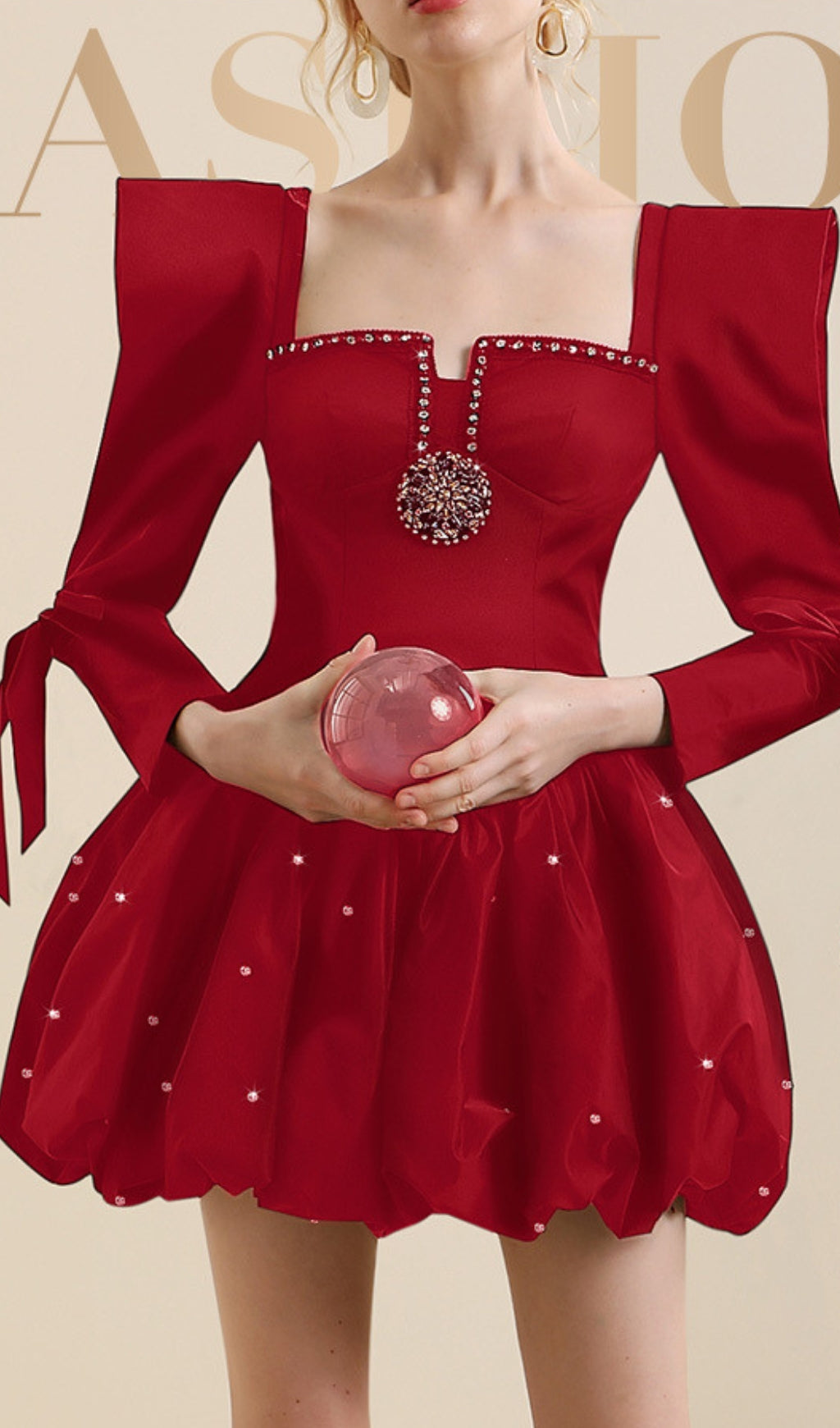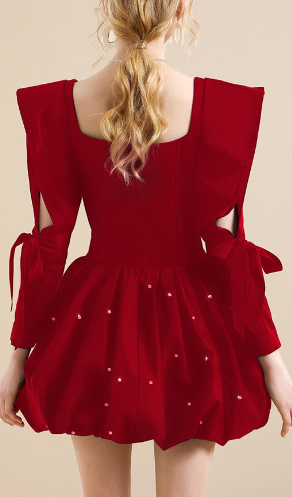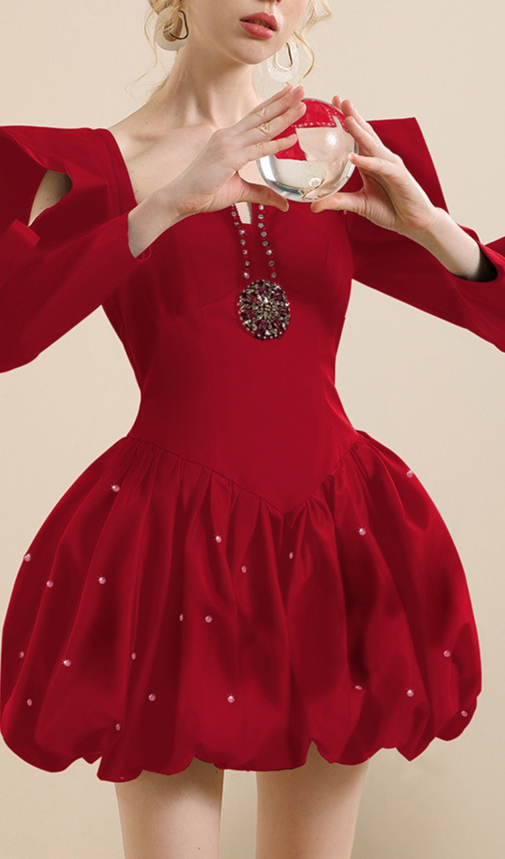 ALBIN RED BEADED MINI DRESS