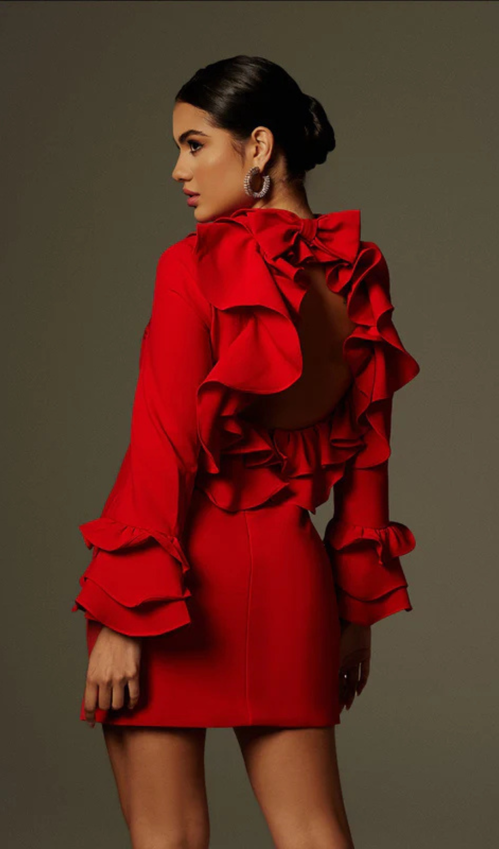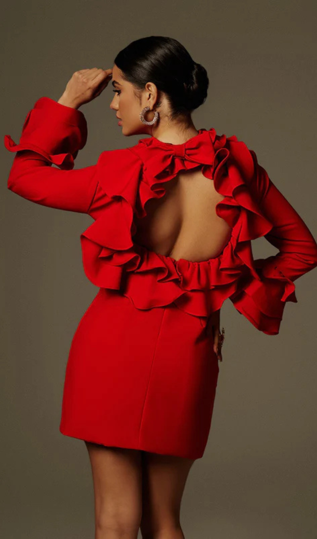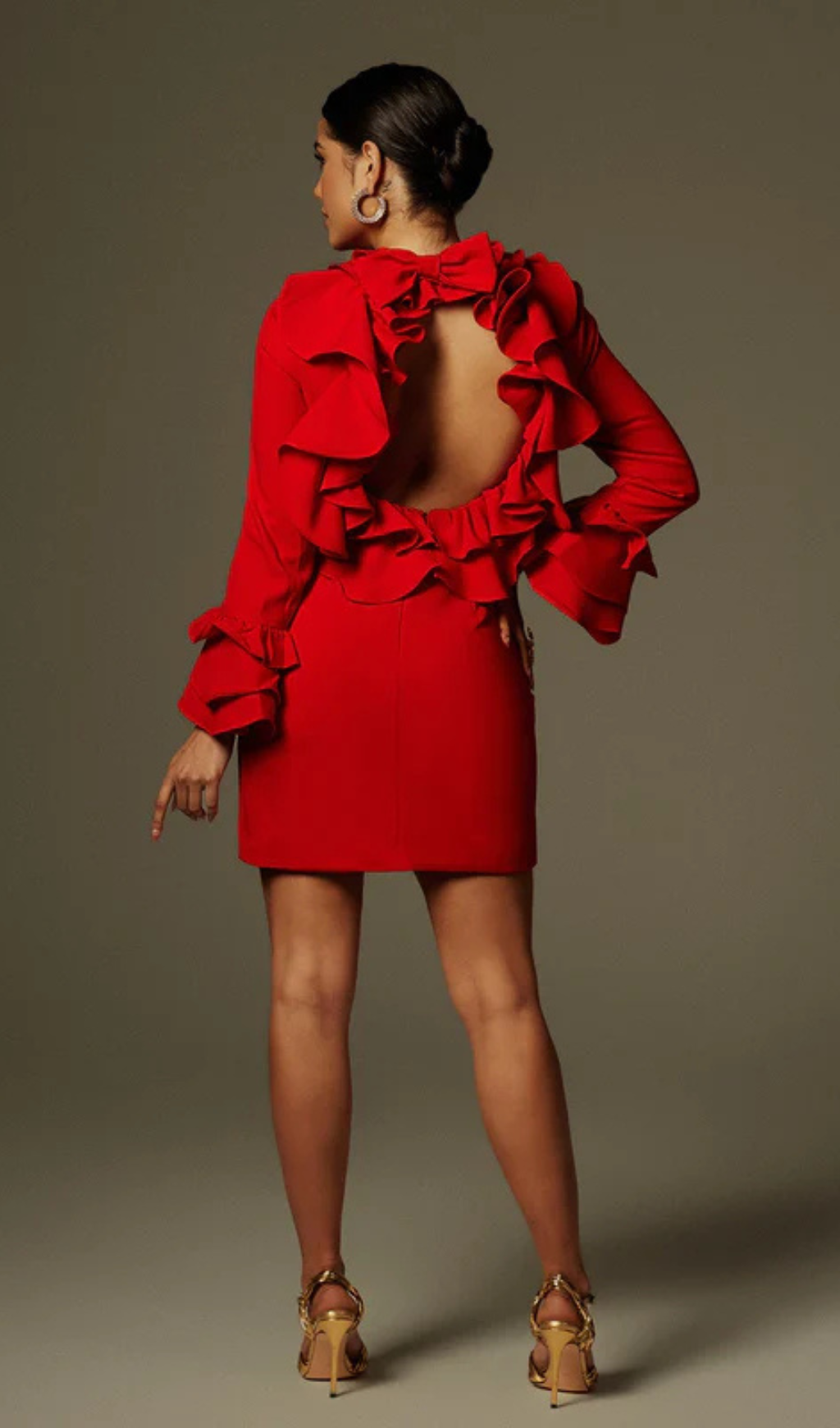 Alessandro Ruffle Backless Mini Dress in red