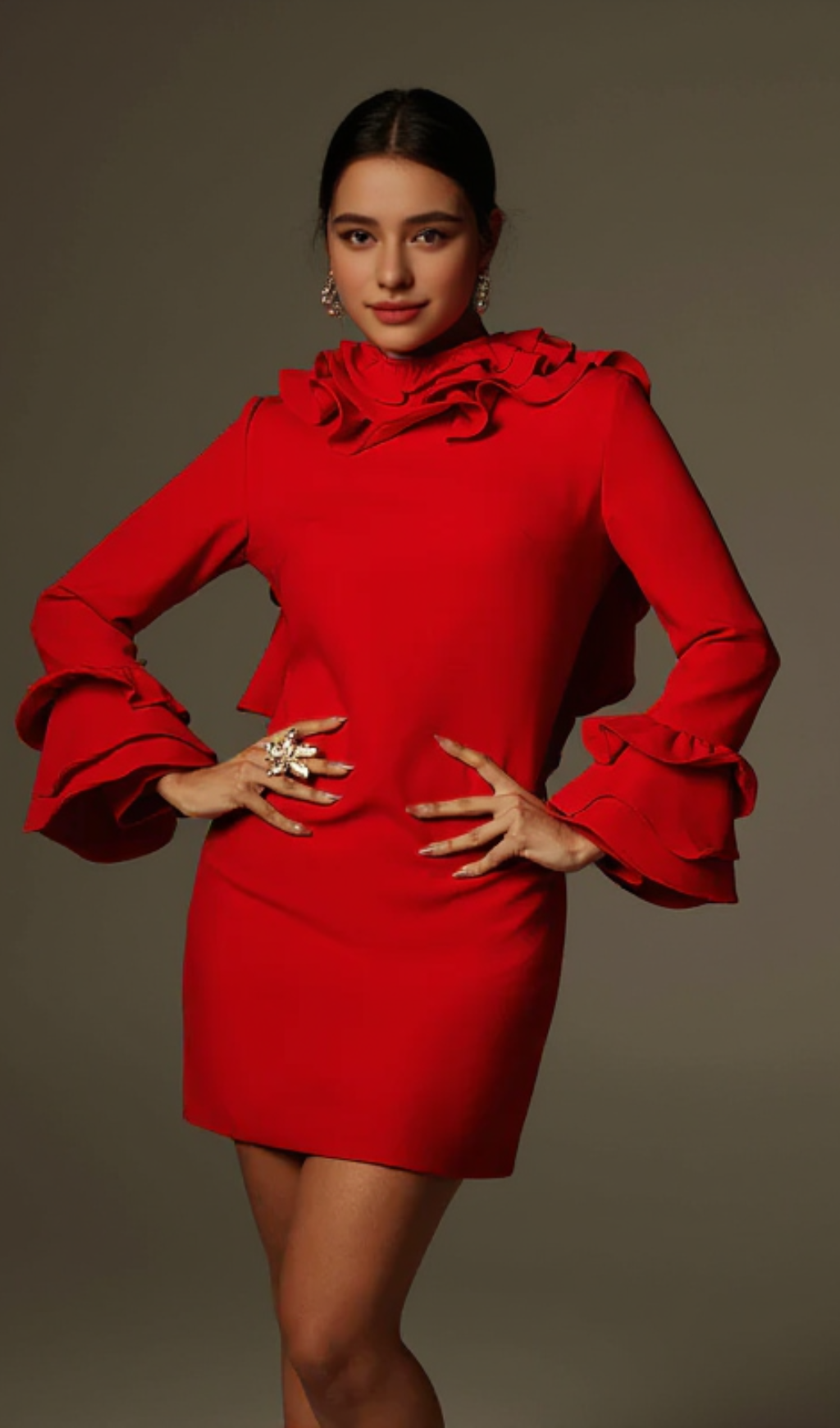 This stunning dress features a unique ruffle design and a sexy backless cut. Crafted with high quality materials, it offers both style and comfort. Perfect for any occasion, elevate your wardrobe with this versatile and fashion-forward piece.