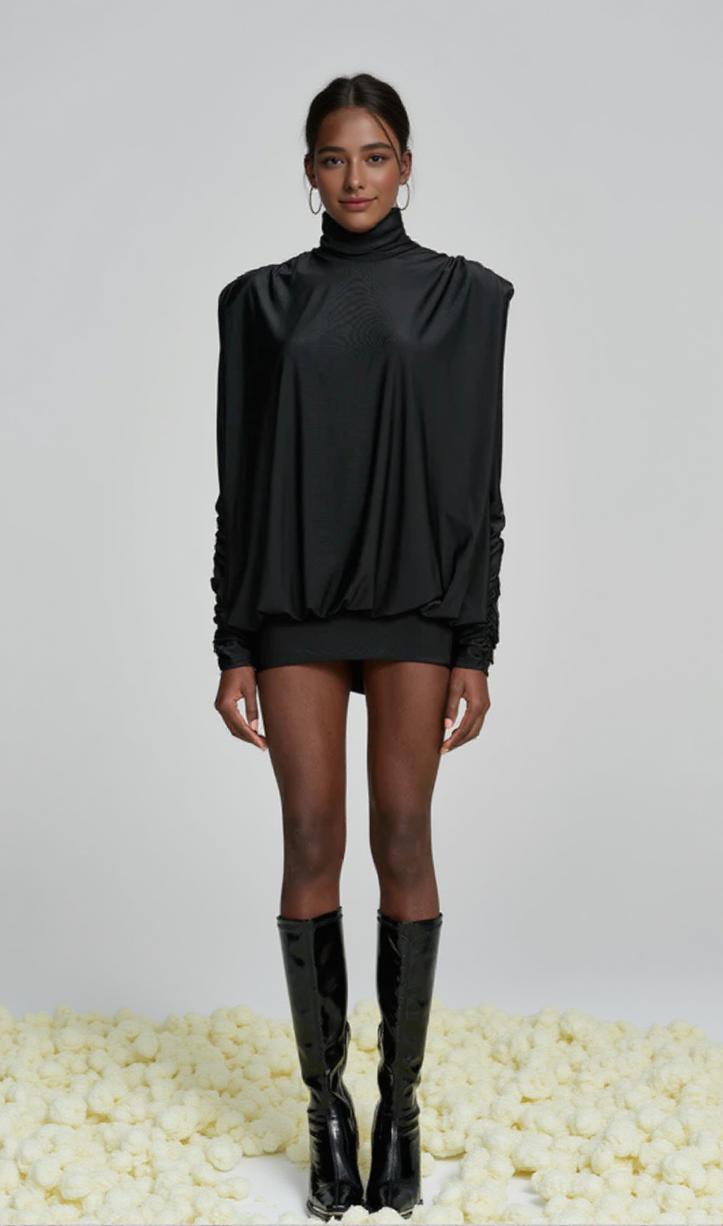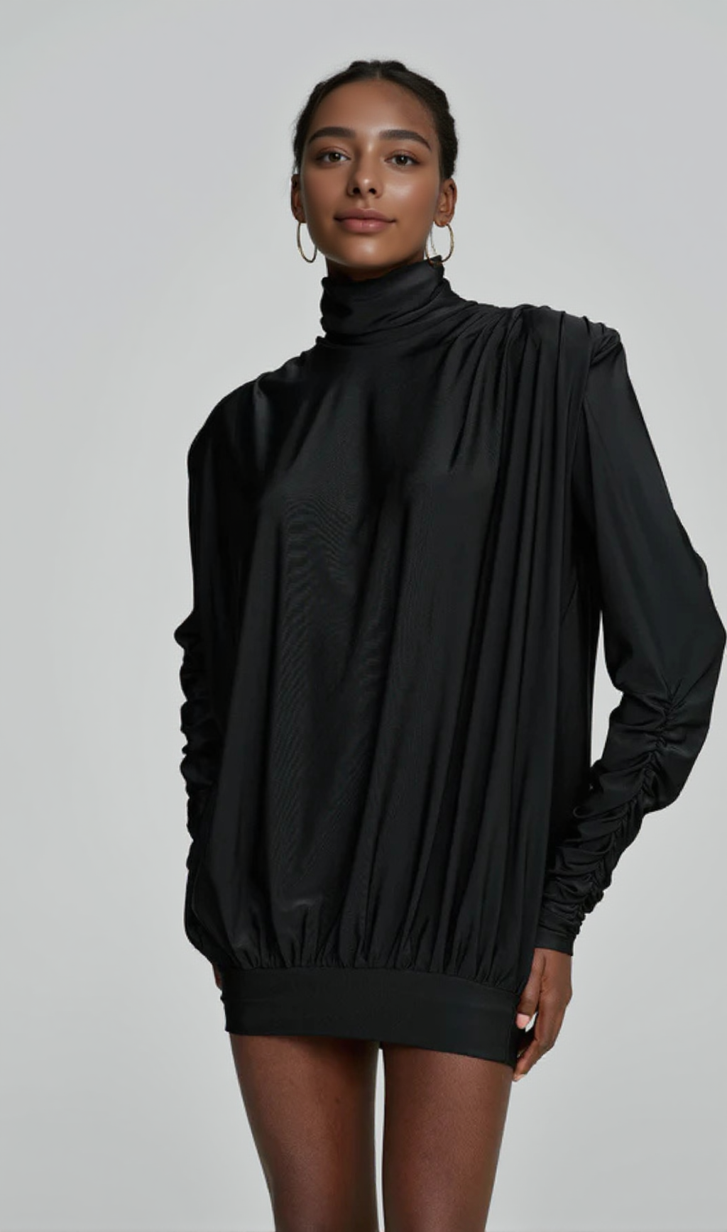 Elevate your style with our Alistair Backless Ruched Mini Dress in sleek black. The daring design exudes confidence and boldness, perfect for those who seek adventure. The backless feature adds a touch of sensuality, while the ruched detailing accentuates your curves. Make a statement with this versatile and empowering dress!