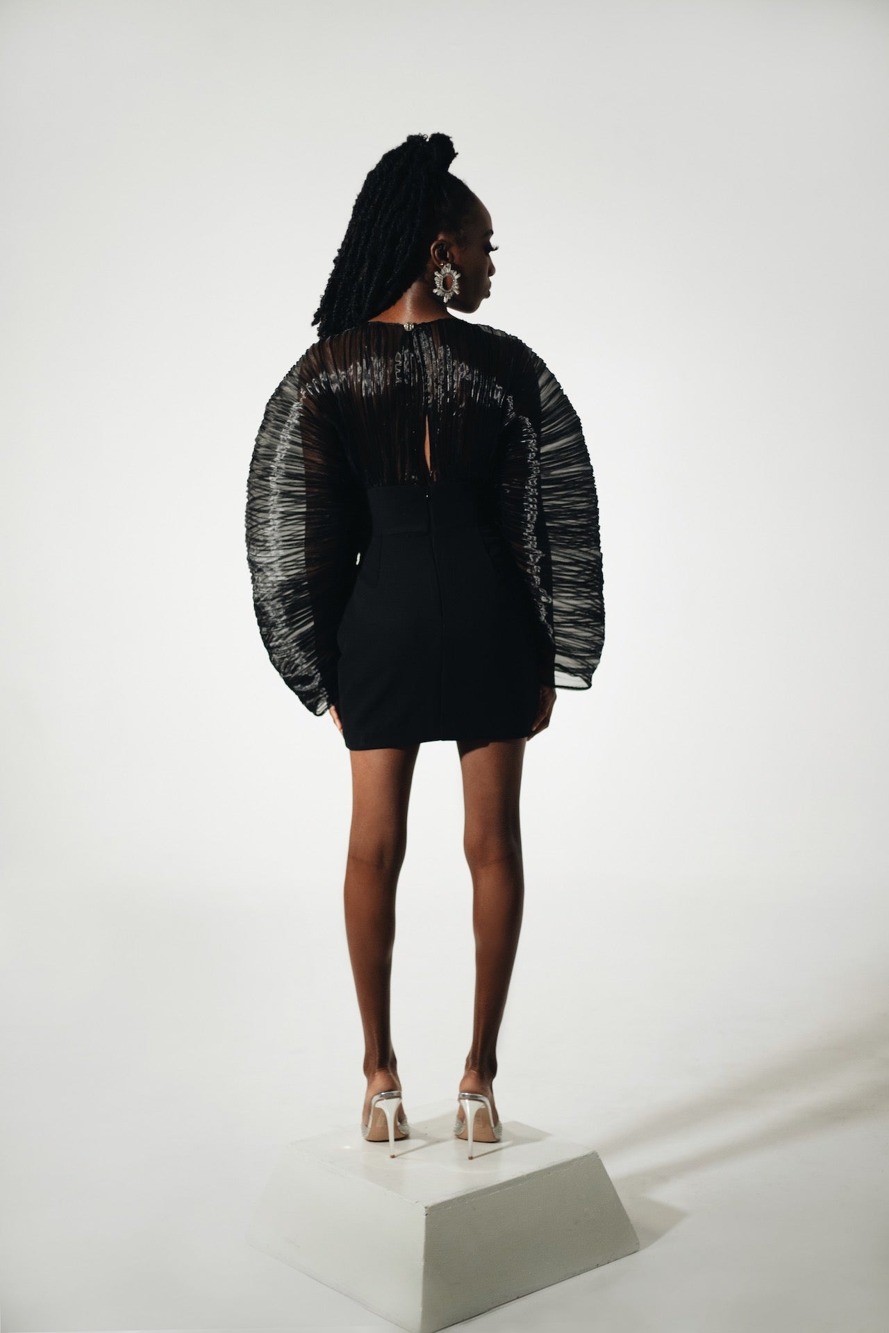 Experience the perfect balance of elegance and playfulness with our alani ruffled embellished mini dress in black. The intricate ruffle detailing and delicate embellishments add a touch of sophistication to this must-have wardrobe staple. Perfect for any event, this dress is sure to turn heads and make you feel confident and stylish.