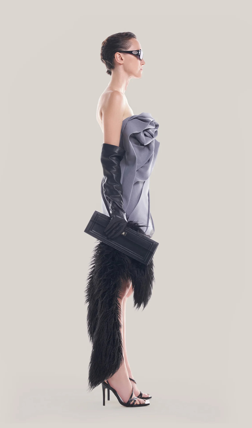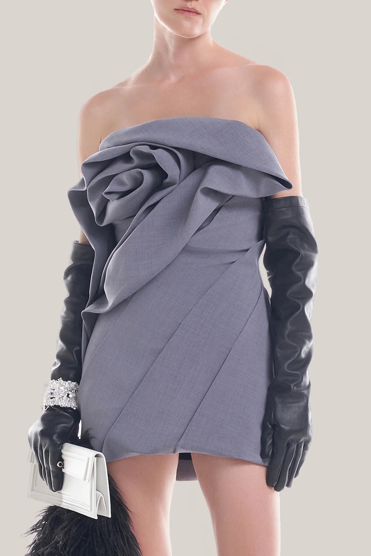 Alisa strapless flower mini dress in gray
