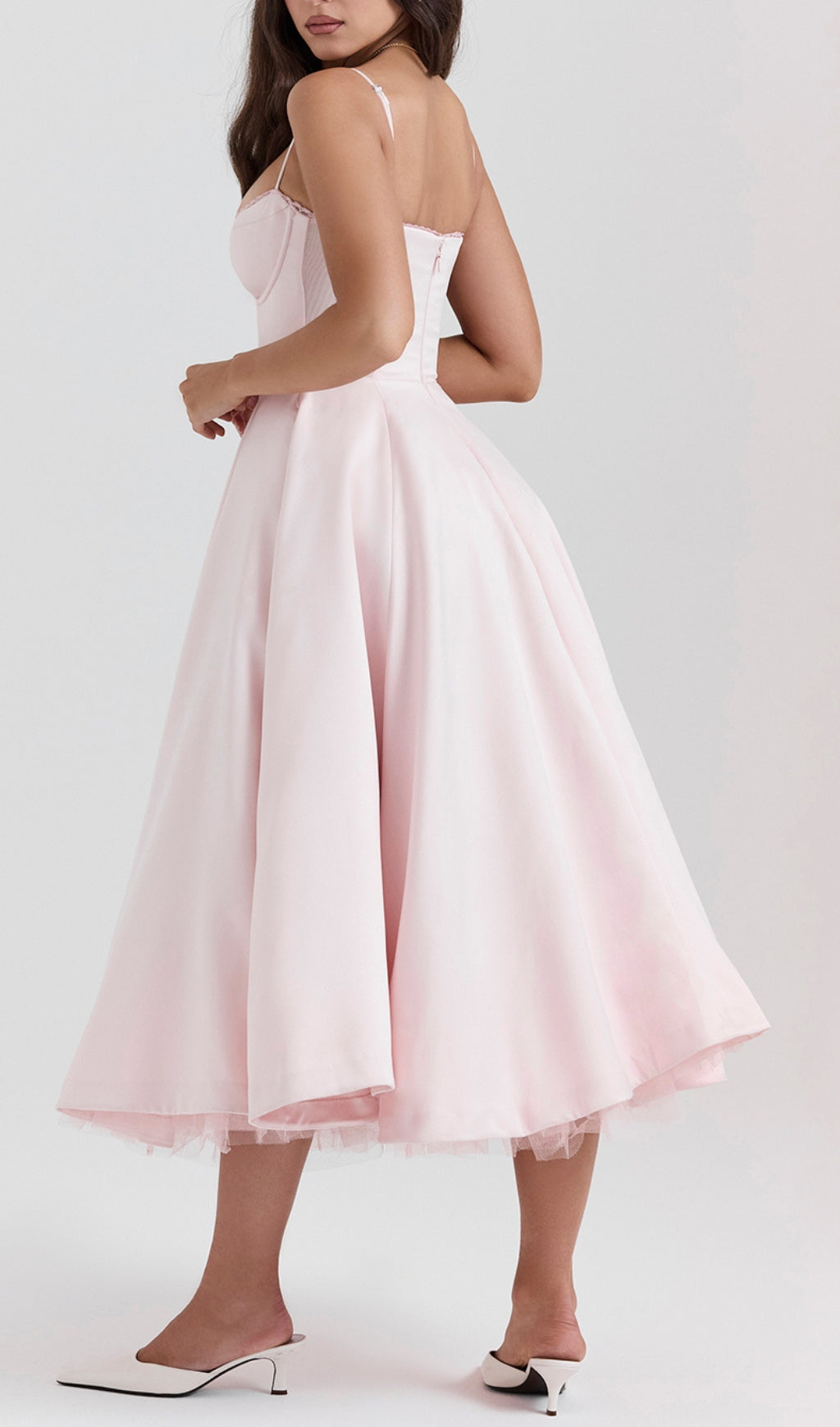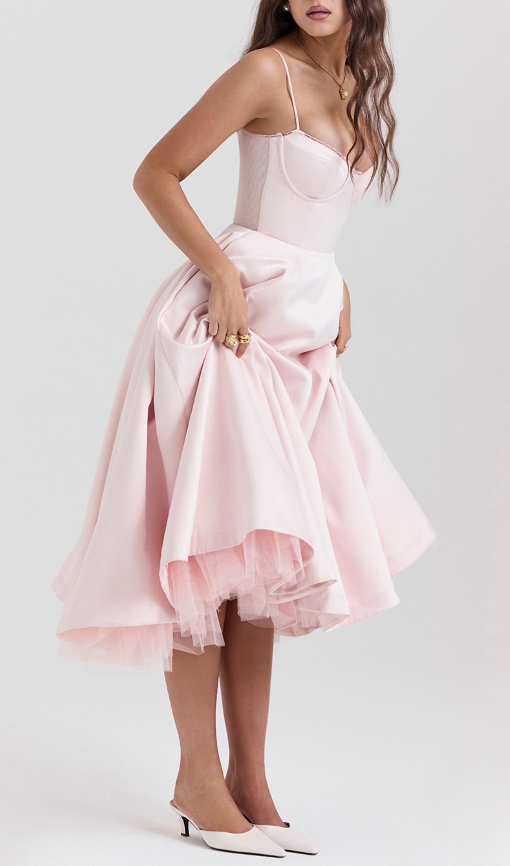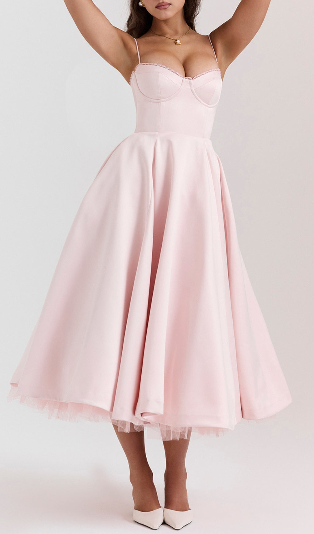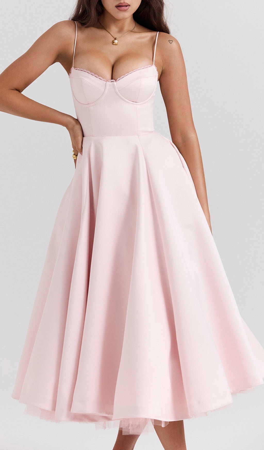 ALODIA PINK MESH HEM MIDI DRESS