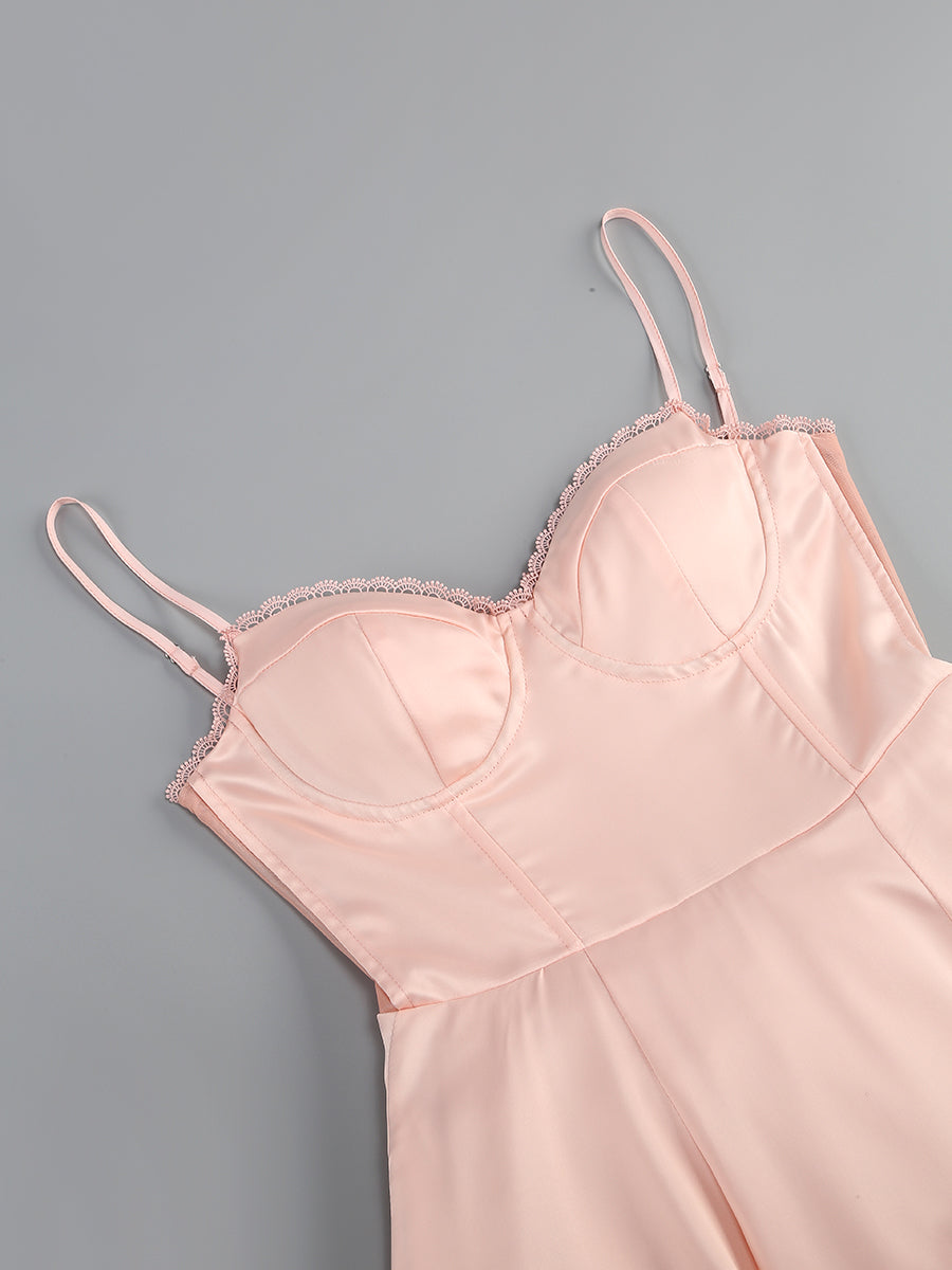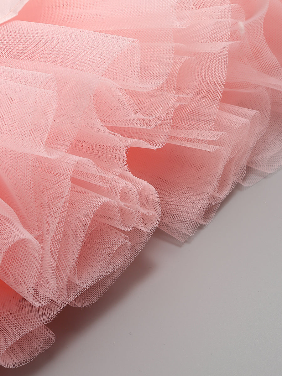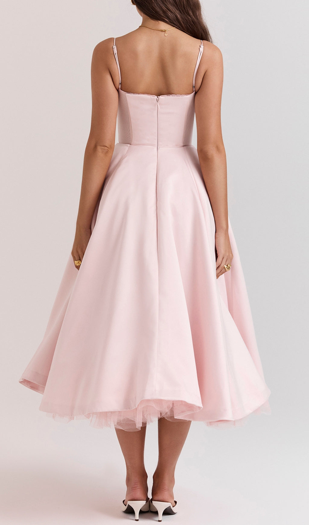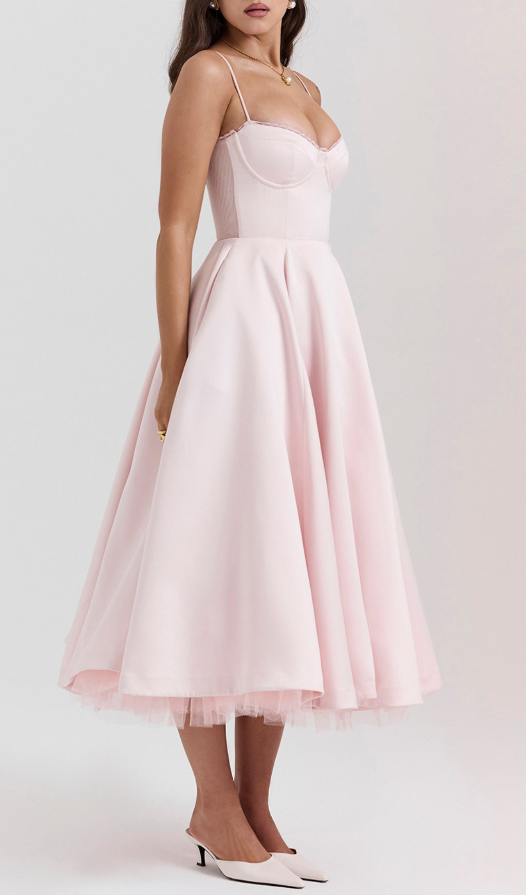 ALODIA PINK MESH HEM MIDI DRESS