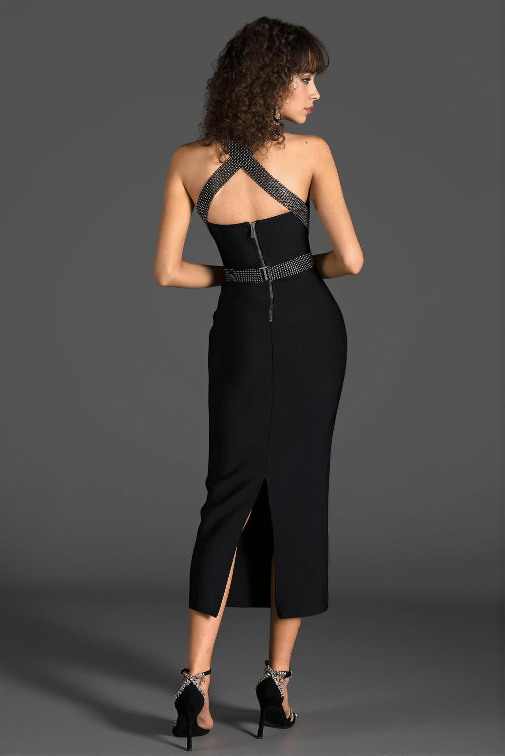 Alston Halter Rhinestone Midi Dress