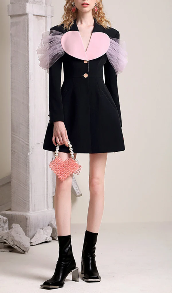 BLACK HEART DECOR JACKET DRESS