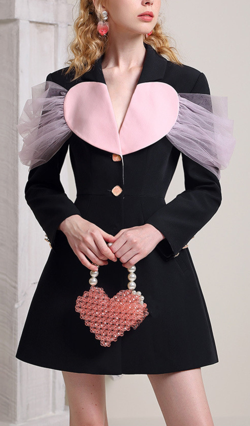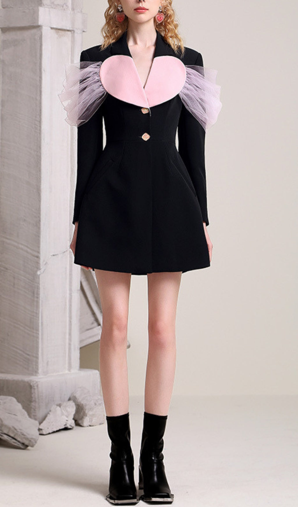 Add a touch of heart to your wardrobe with the ALYA jacket dress! Featuring a unique heart decoration, this dress will make you stand out from the crowd. Perfect for any occasion, this jacket dress will keep you stylish and trendy. Get ready to receive compliments in this playful and quirky piece!
