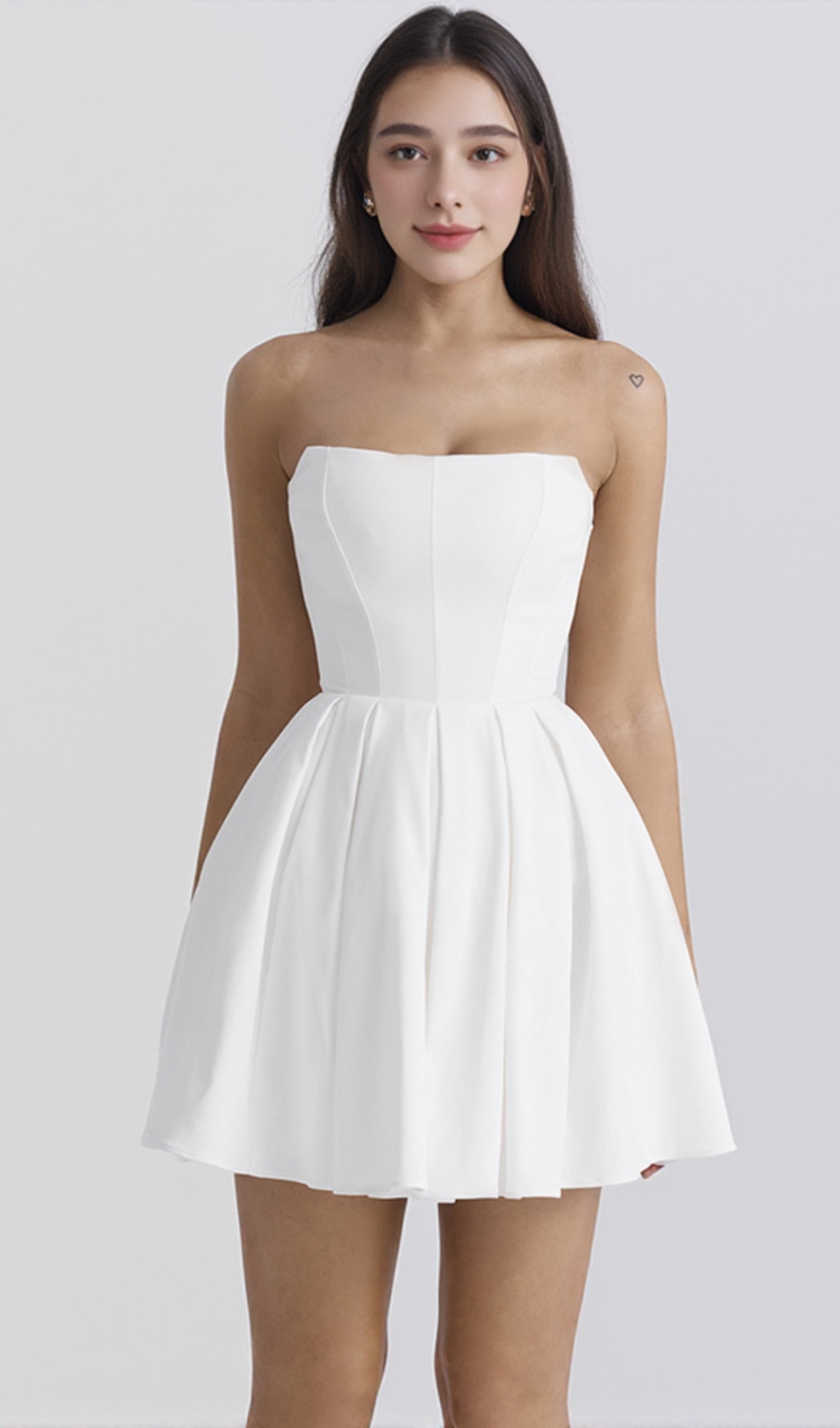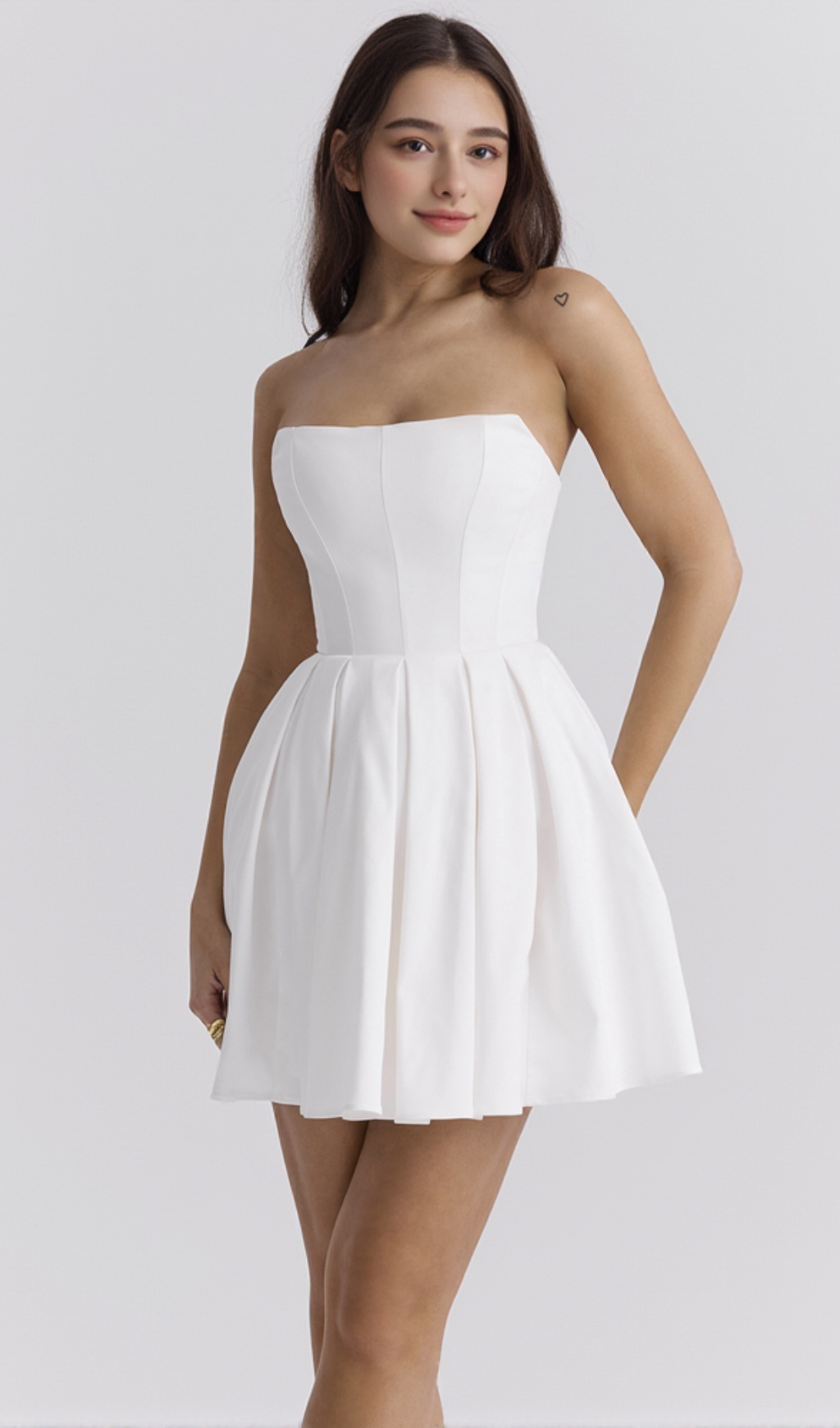 alyssa white strapless pleated mini dress