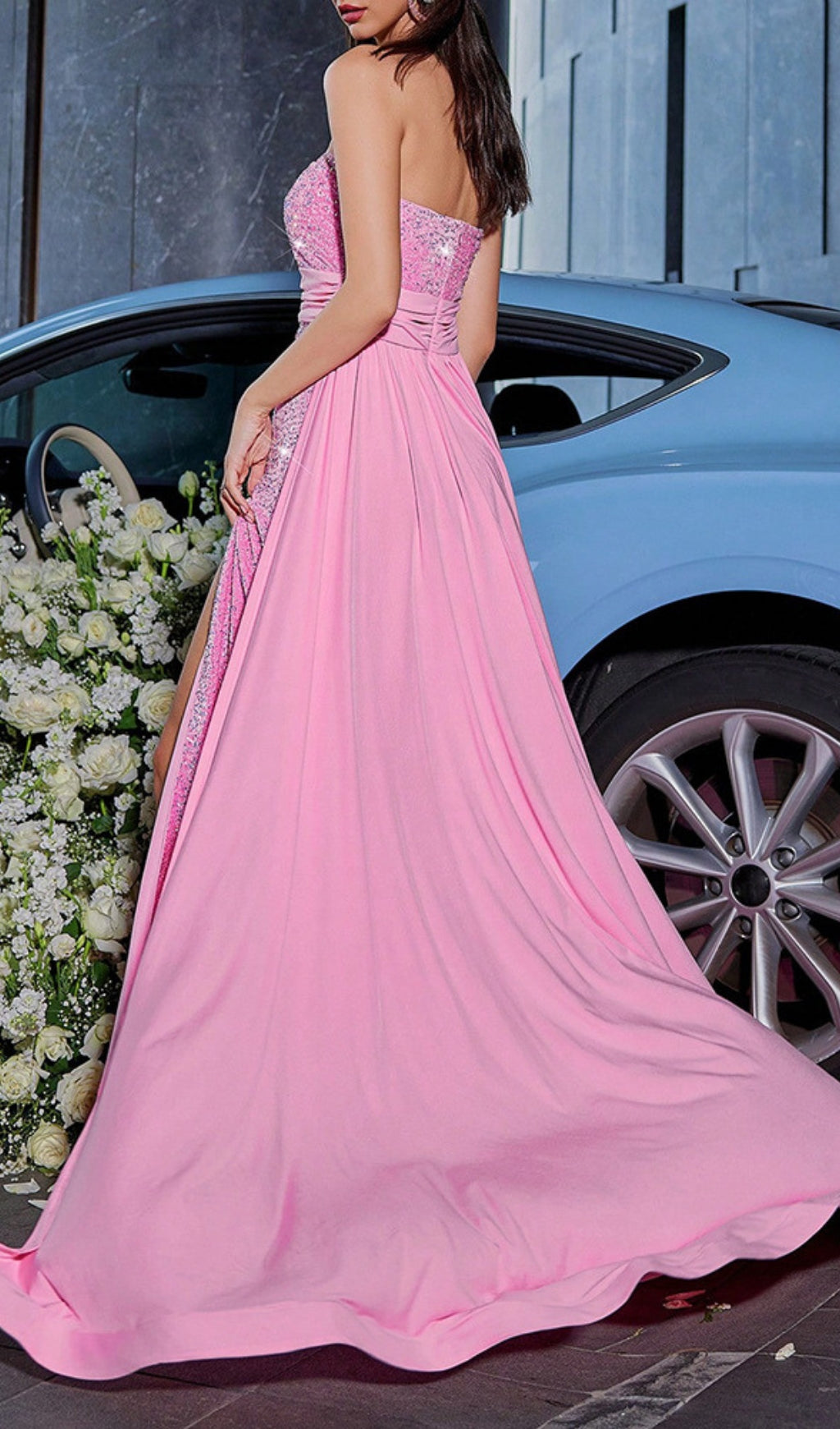 Turn heads in the AMABLE PINK SEQUIN MAXI DRESS. With its dazzling pink sequins and flowing maxi cut, this dress is both eye-catching and comfortable. Perfect for a night out or a special occasion, it's sure to make you stand out in the best way possible.