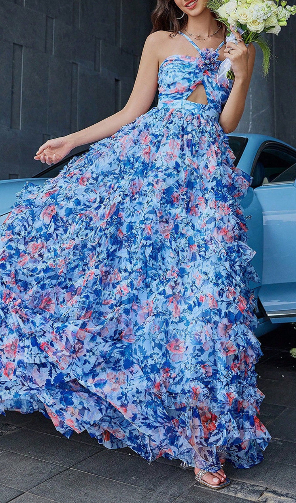 Inject a dollop of delight into your closet with our Amalya Blue Floral Maxi Dress. This exquisite frock is all fun and games with a playful bluish bloom motif, that's certain to spin heads! Its free-flowing maxi sweep brings a blend of comfort and chic panache for any event.